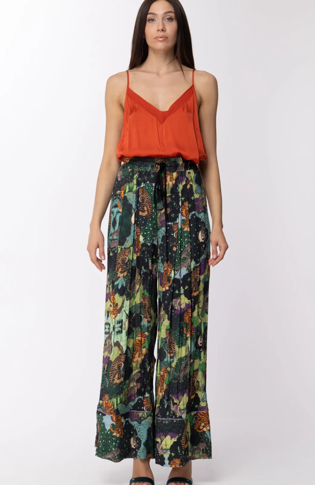 Con un body o un crop top per giocare con i volumi, con una blusa per aggiungere freschezza e morbidezza: sfrutta al meglio questi pantaloni palazzo Motel con la loro fantasia esotica e multicolor. Estremamente casual, con gamba molto ampia e vita regular con coulisse, il capo giusto per accompagnarti nelle sere in vacanza, con zeppe e borsa a tracolla.