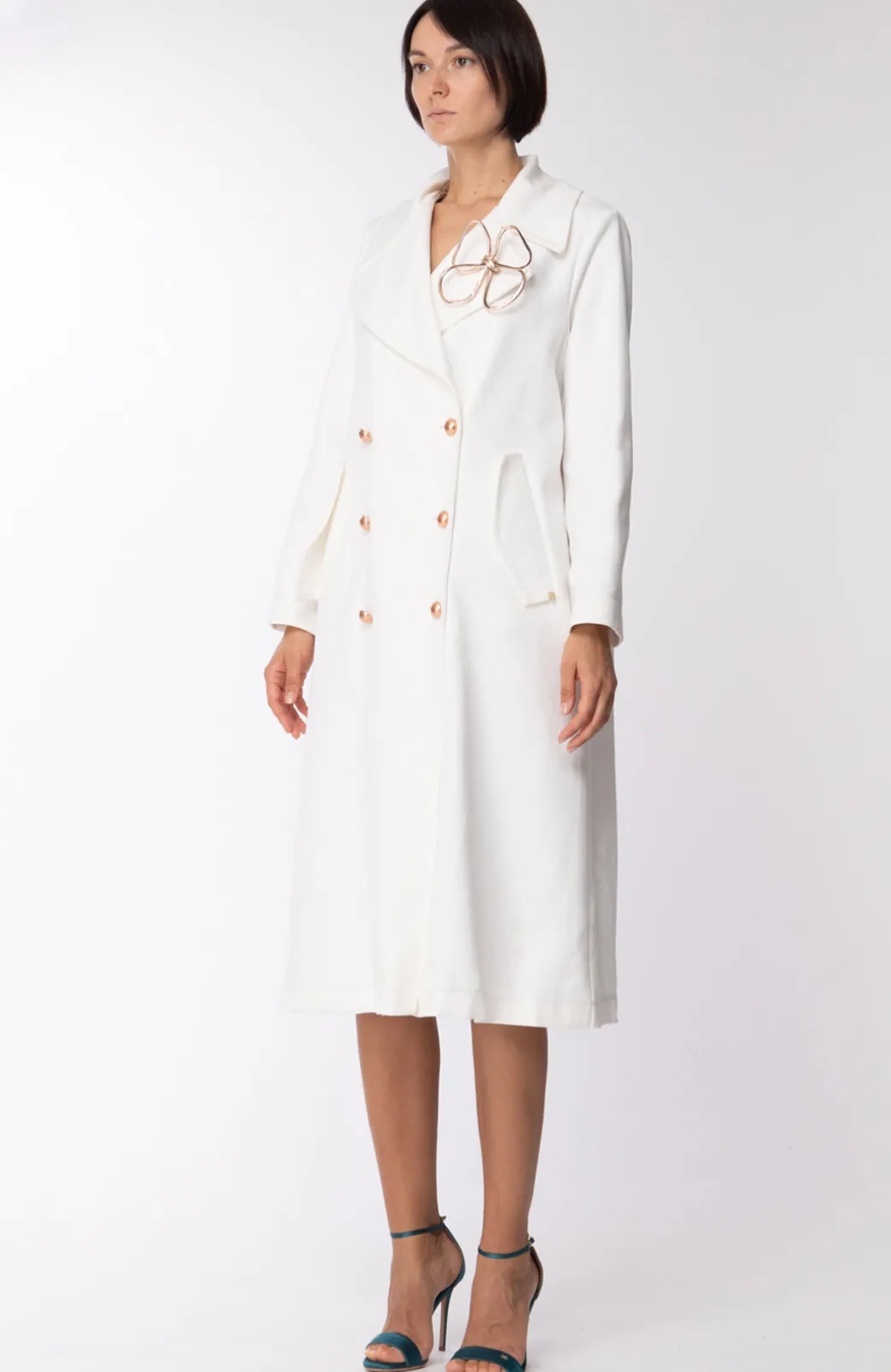 Un ampio colletto e un elegante doppiopetto sono le caratteristiche di questo soprabito Motel, che ti darà un’allure urban chic. Il tocco in più? La spilla in metallo appuntata sul risvolto, in tono con la doppia fila di bottoni sul fronte.