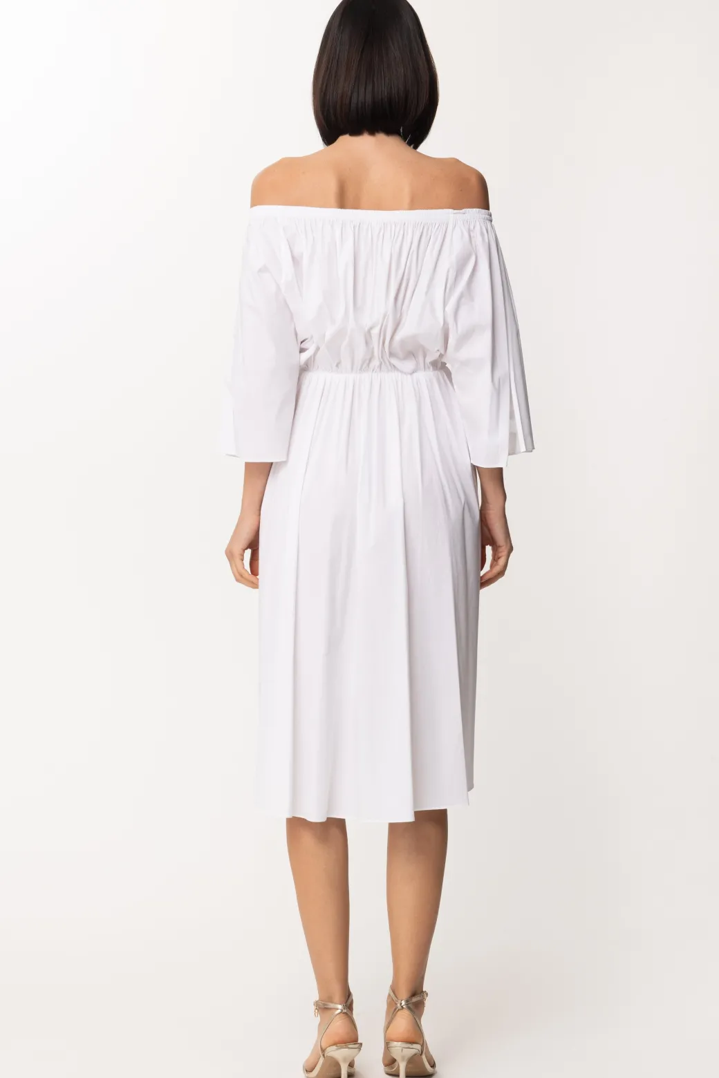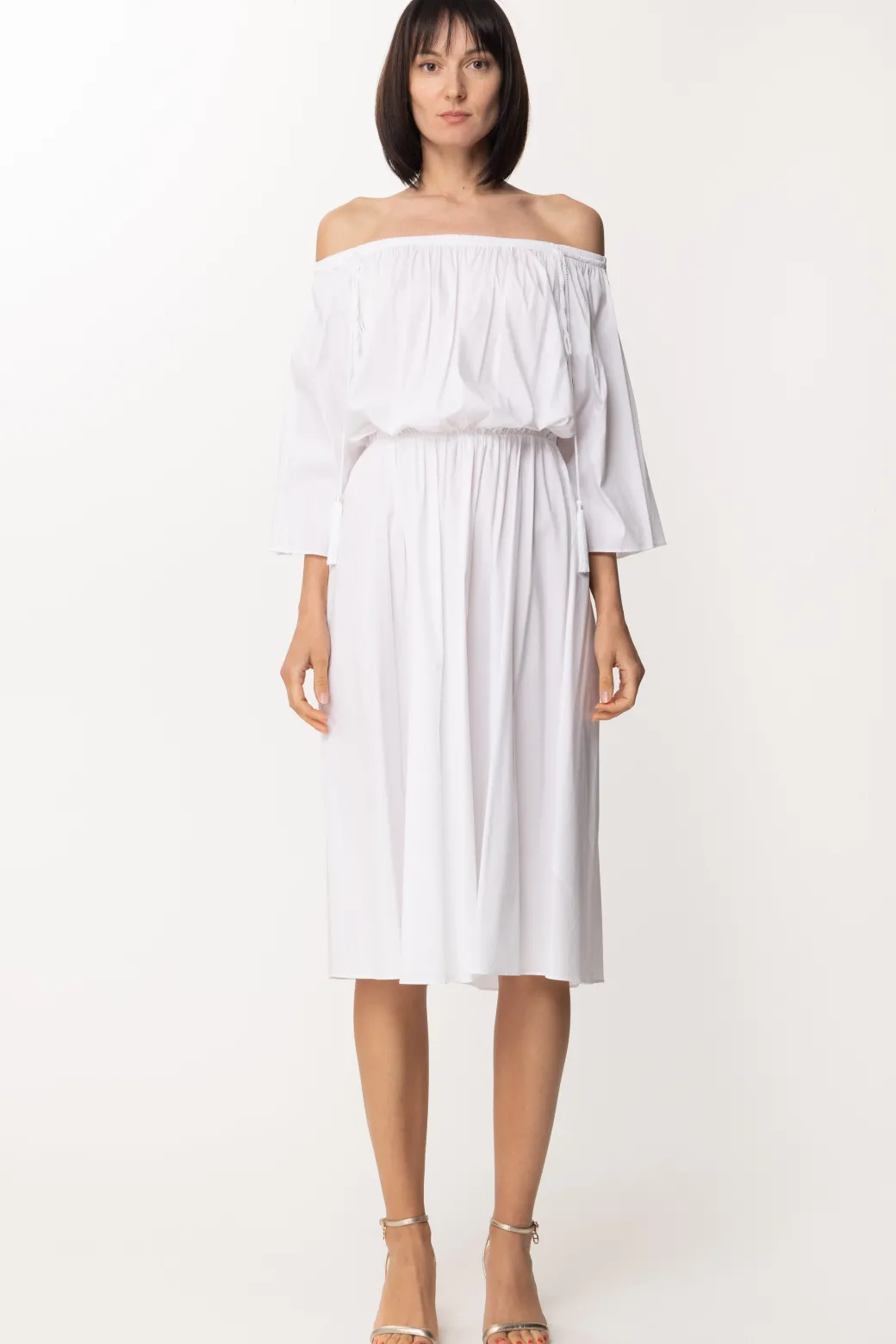 Scegli un look che sia femminile, delicato e arioso, come quello proposto da questo abito Patrizia Pepe. Spalle scoperte e maniche a tre quarti, abbondante sulla silhouette ma stretto al punto vita per quel tocco di femminilità sempre necessario. Come si personalizza un abito basico? Con bijoux e accessori, per creare outfit tanto spensierato quanto chic.