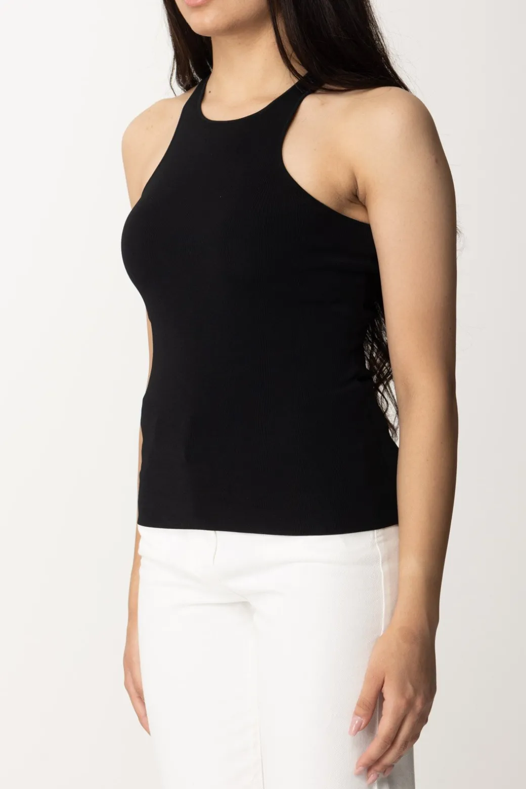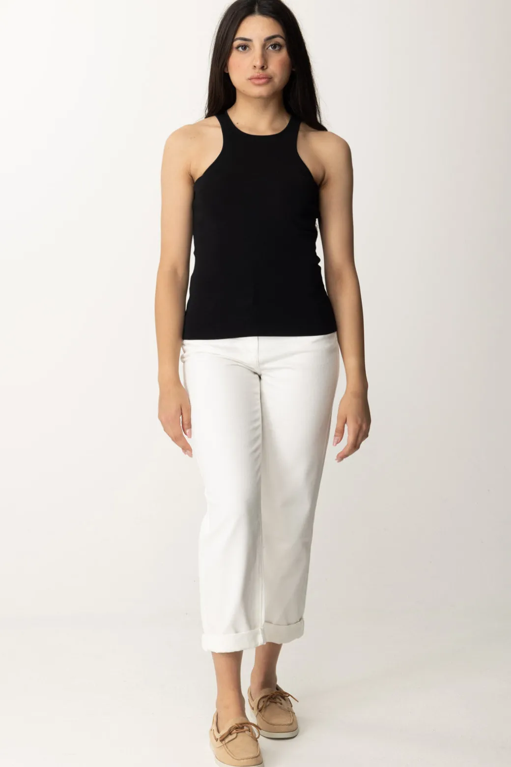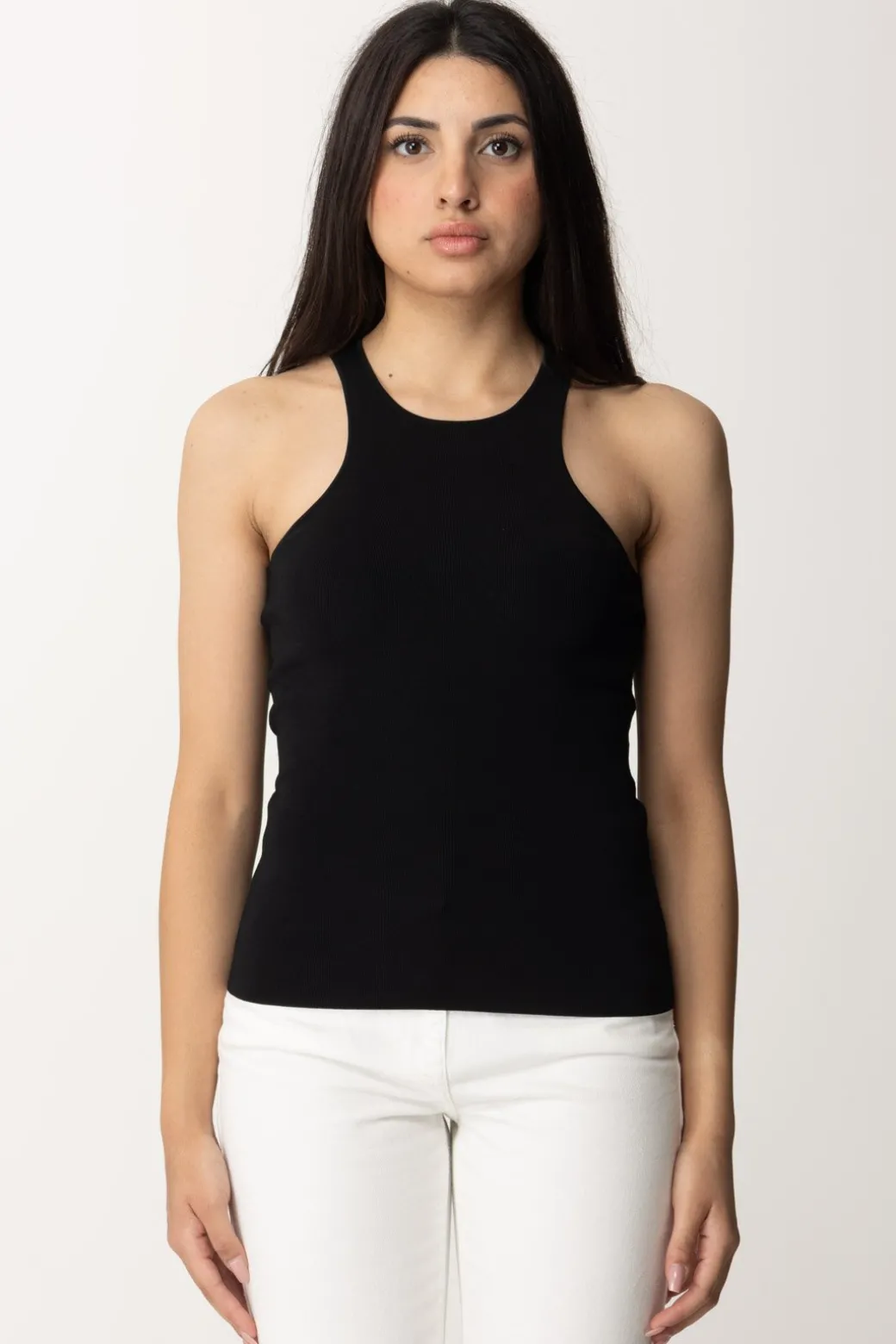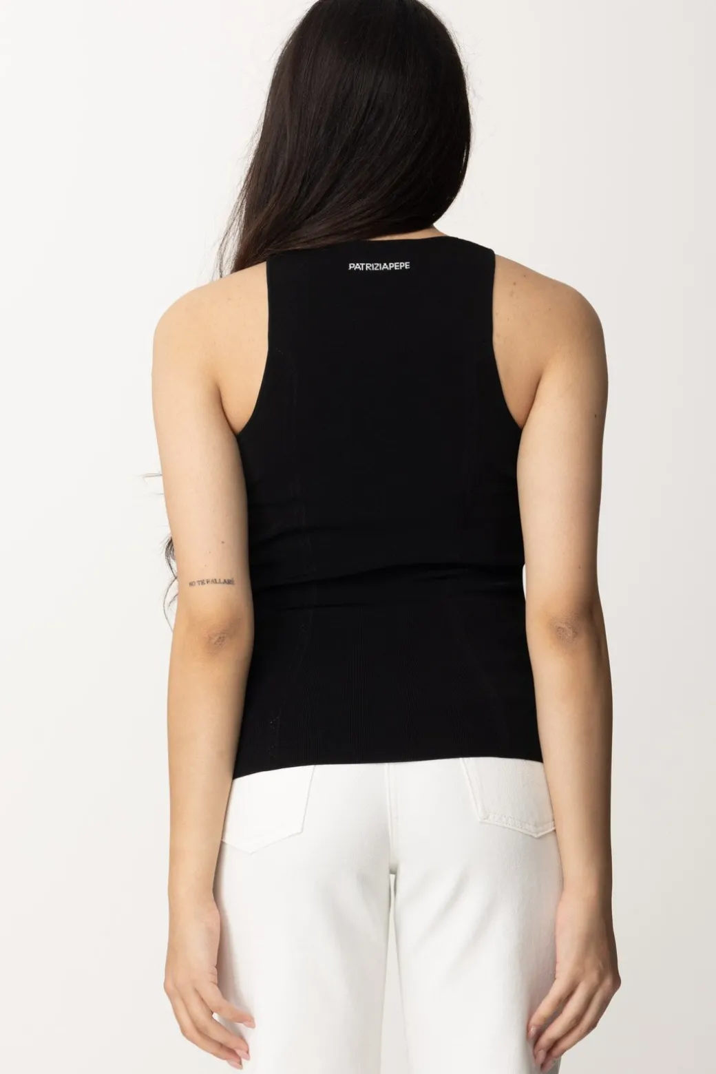 Top in maglia Patrizia Pepe che troverai pratico in quanto super versatile. Basic, con scollo all’americana e fit aderente, indossalo anche sotto un cardigan o una giacca in denim per outfit casual e semplici ma estremamente comfort. Logo lettering sul retro.