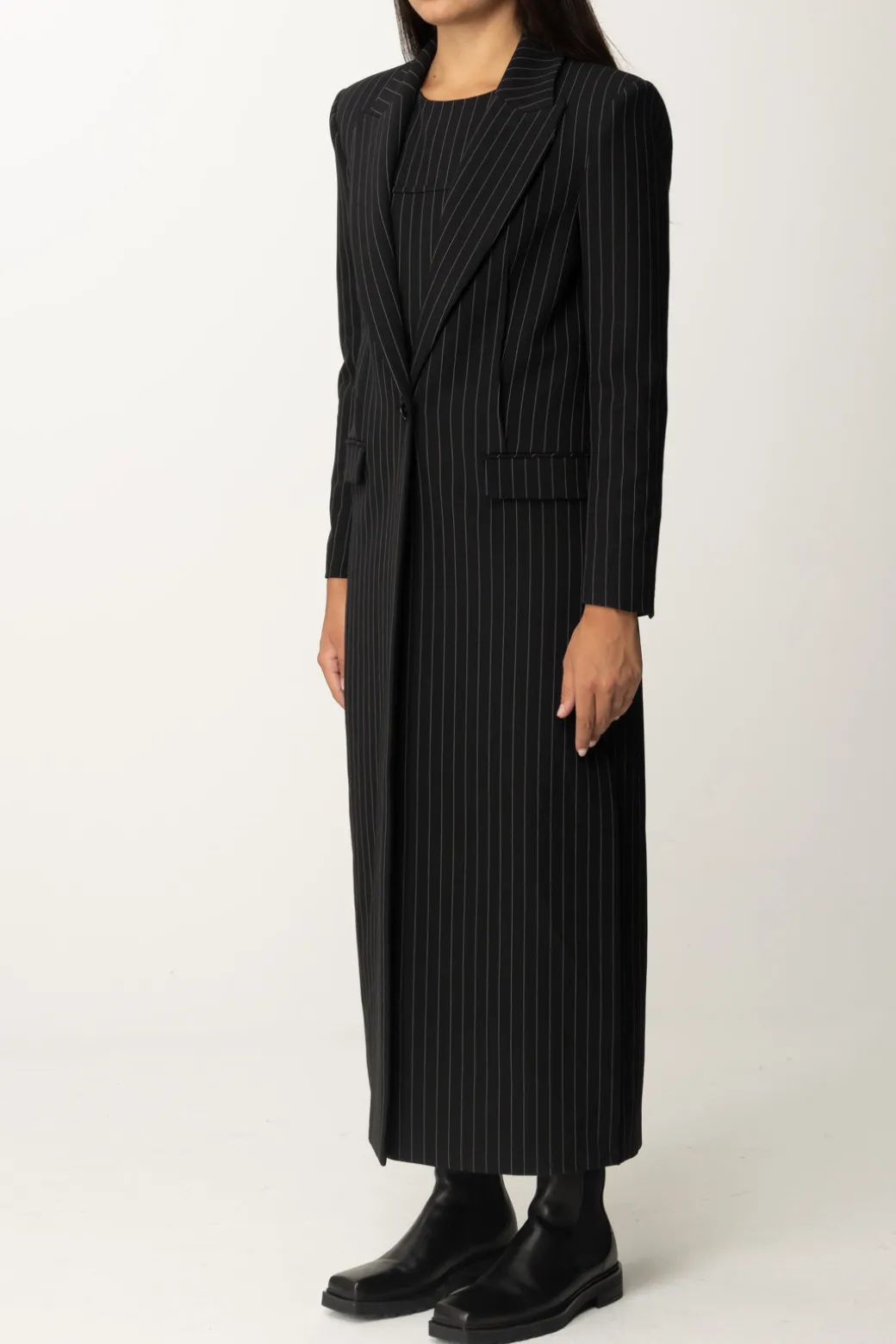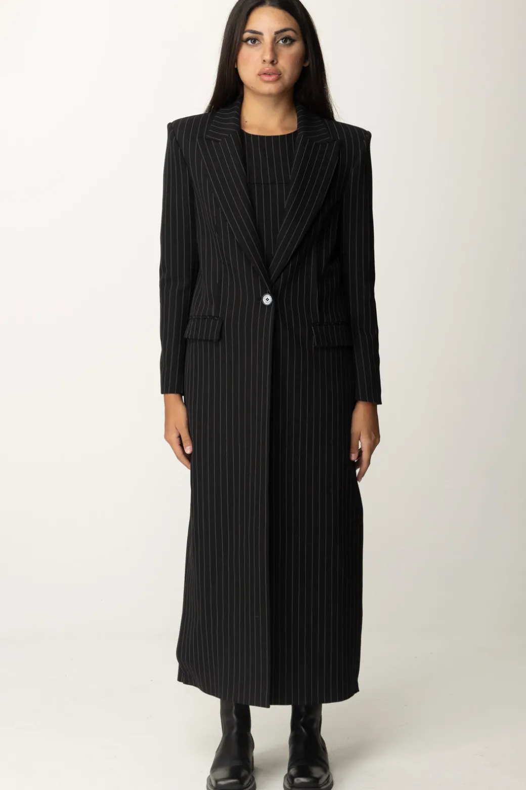 Un cappotto Patrizia Pepe dalla vestibilità maschile, viene arricchito da spacchi sui fianchi che aggiungono movimento e originalità e dal morbito tessuto in flanella gessata. Perfetto per chi ama uno stile confortevole ma ricercato.