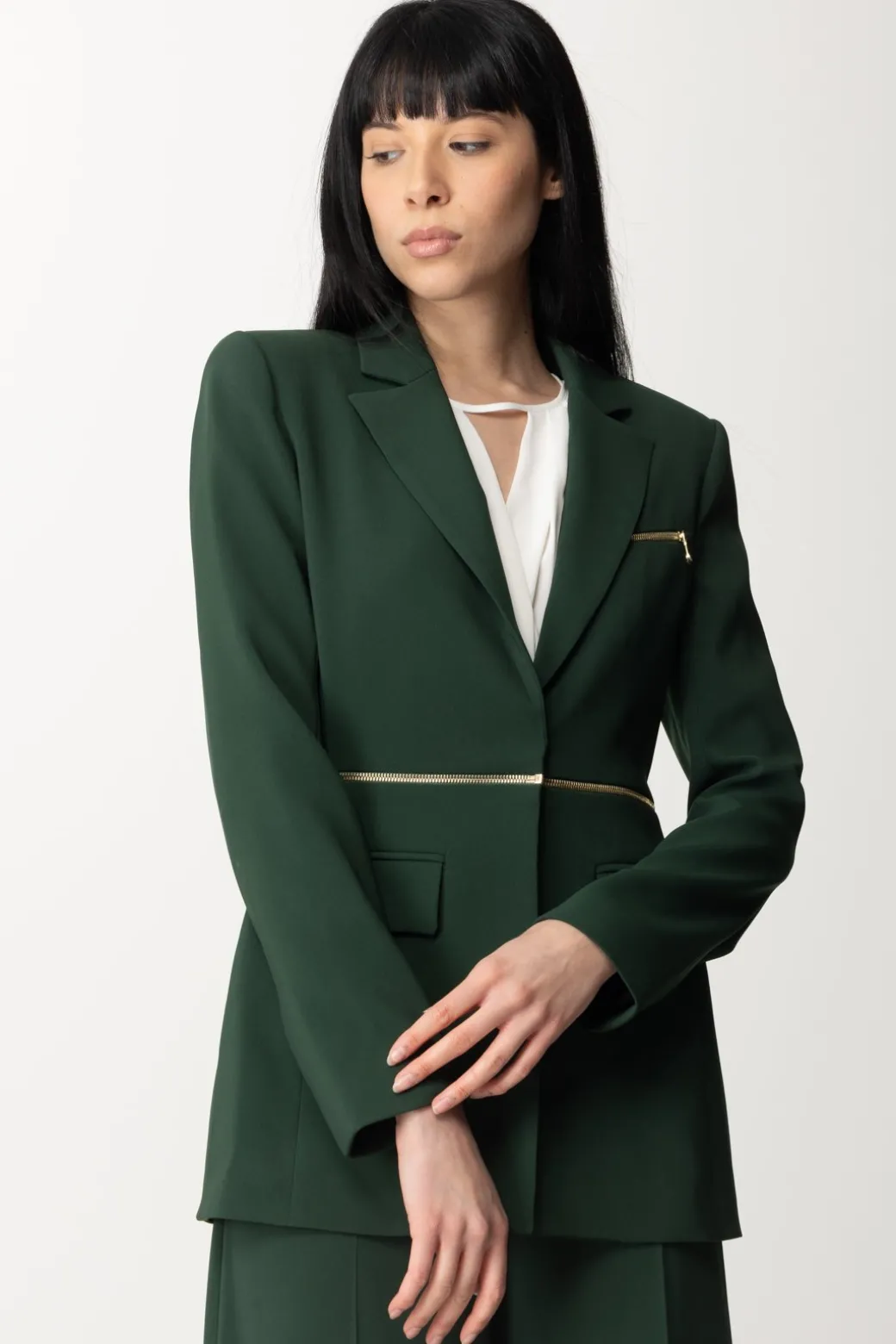 Questa giacca blazer Patrizia Pepe è il perfetto connubio tra stile unico e versatilità. Puoi indossarla come preferisci e in base al tuo mood: crop per un look audace o lunga per un feeling classy. Il tutto è possibile grazie alla zip con logo fly che aggiunge un tocco dinamico. Un capo elegante e contemporaneo che si adatta a diverse occasioni, garantendo un look sempre impeccabile.