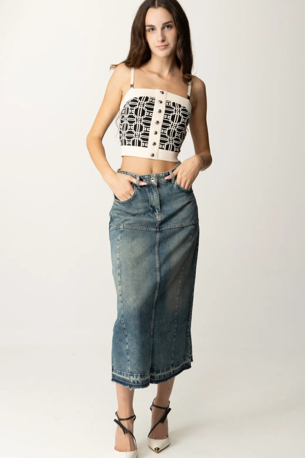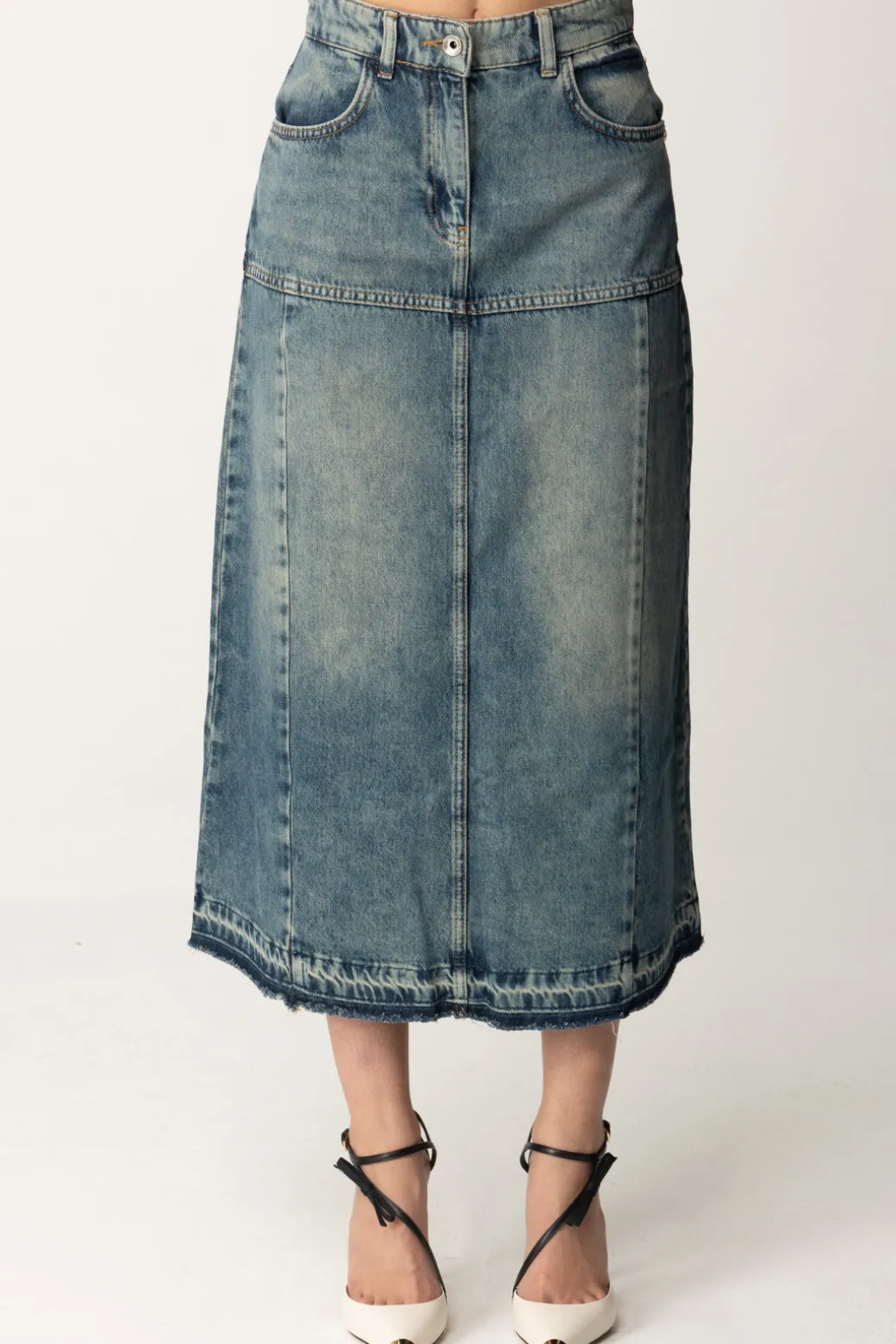 Una gonna Patrizia Pepe dal taglio midi, realizzata in denim comfy con un’ispirazione vintage e orlo grezzo sul fondo gonna che offre un’atmosfera trendy. È un capo versatile che può essere indossato con tacchi e camicetta o con sneakers e una t-shirt per un look effortessly chic!