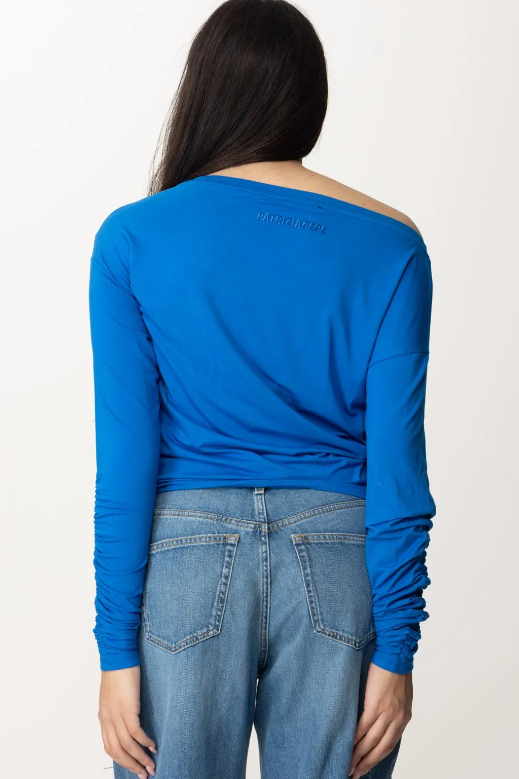 Maglia Patrizia Pepe semplice e versatile, realizzata con uno scollo a barca e maniche lunghe e aderenti con arricciature alla fine. Da indossare sola abbinata a pantaloni e jeans o come sotto giacca per uno stile casual.