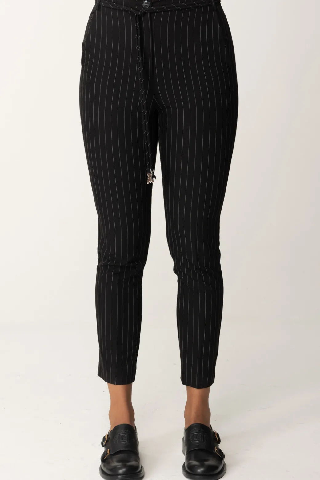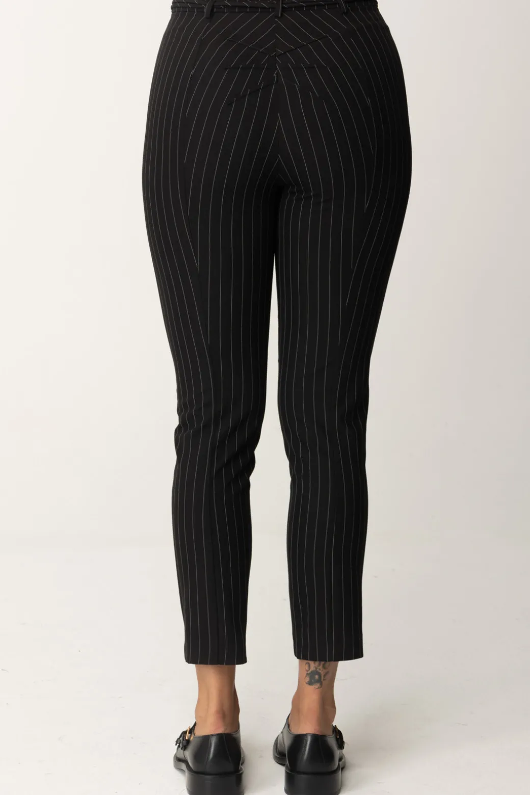 Eleganza classica per questi pantaloni Patrizia Pepe in tessuto gessato, con la nota contemporanea del cordoncino con finalini logati al punto vita. Un bottom facile da combinare con diversi top della collezione e indossare h24: da mocassini per l’ufficio, alle sneakers da tempo libero, ad un bel sandalo per la sera, non perdono mai il loro charme!