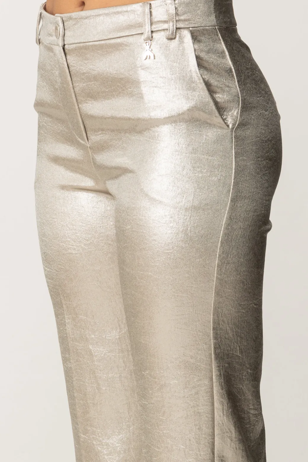 Questi pantaloni Patrizia Pepe doneranno un tocco glamour e audace al tuo outfit. Il tessuto scintillante li rende ideali per le serate eleganti, Indossali con il blazer coordinato per un total look grintoso, oppure con un top minimal per bilanciare l’effetto brillante. Tacchi e una pochette completano l’outfit perfetto per una serata in città.