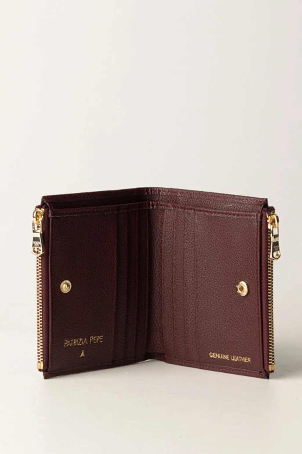 Di questi accessori così smart amiamo la praticità: a questo portafogli Patrizia Pepe, nonostante le piccole dimensioni, non manca nulla per comodità e stile! Realizzato in pelle con applicazione in oro di logo lettering e Fly, presenta all’interno diversi scomparti portacarte e taschine laterali chiuse con zip. Perfetto per tutte le tue mini bag!