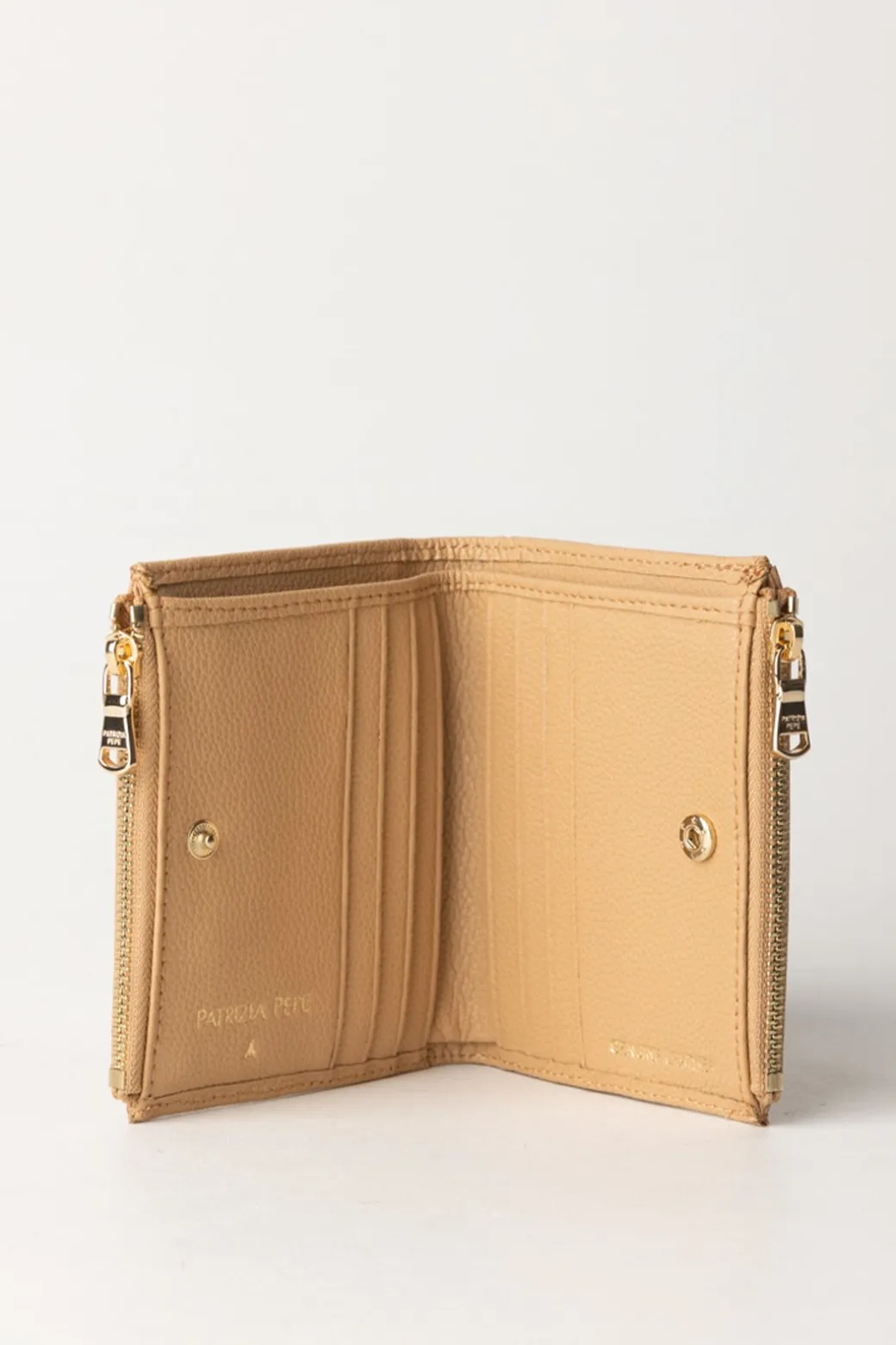 Piccolo e compatto, il Portafogli Patrizia Pepe sarà il perfetto compagno per tutte le mini bag, versatile ed elegante. Il suo design è impreziosito dal logo gold, scompartimenti per carte e zip esterna per le monete.
