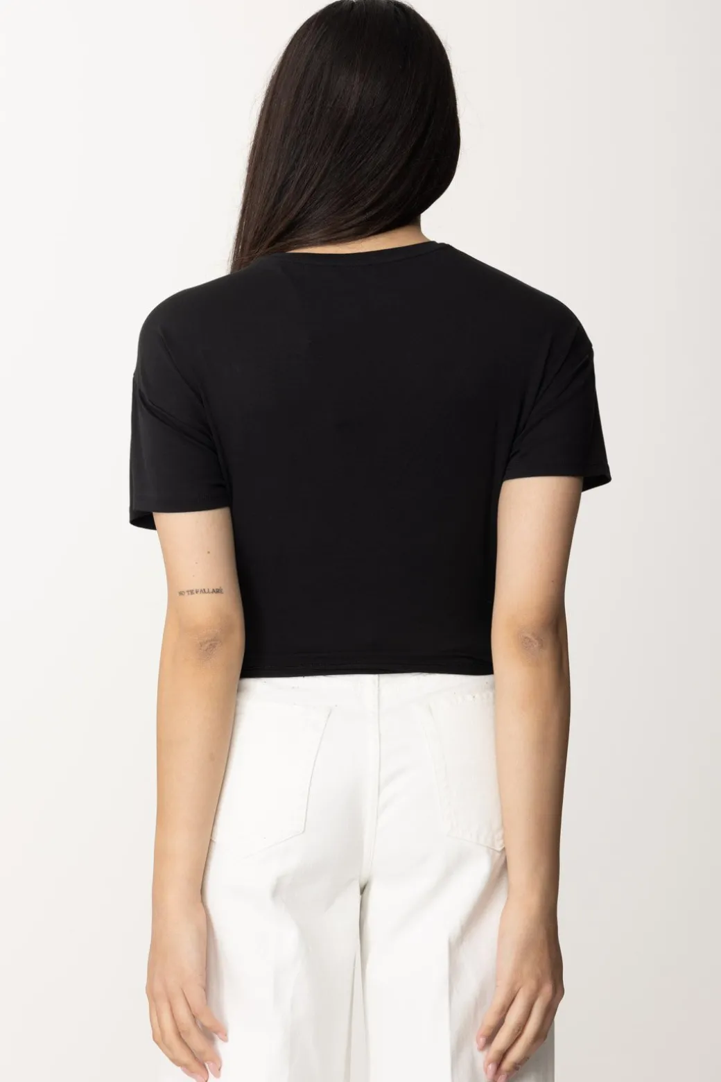 Questa t-shirt Patrizia Pepe offre un design moderno con maniche ampie e un incrocio fermato da logo fly in oro e strass. Un capo versatile e chic, ideale per aggiungere un tocco di lusso a qualsiasi outfit casual.