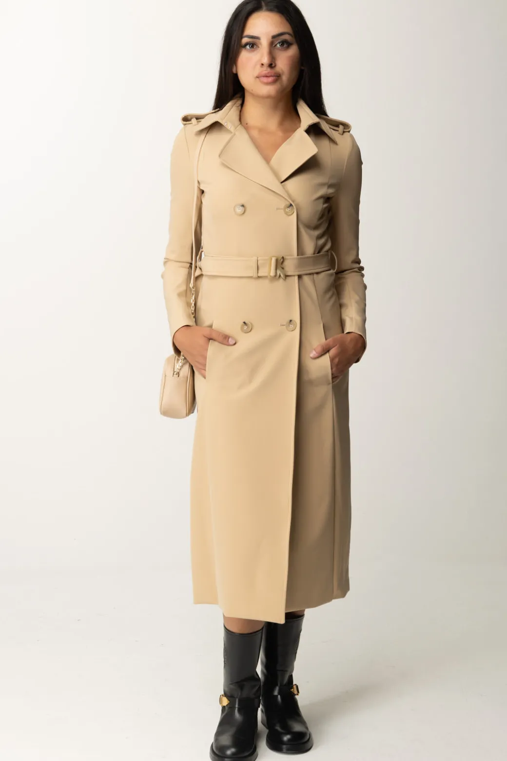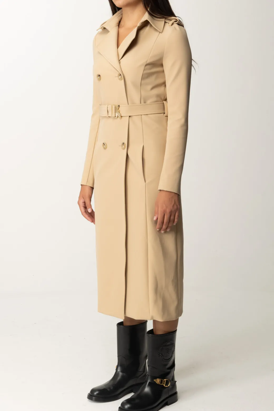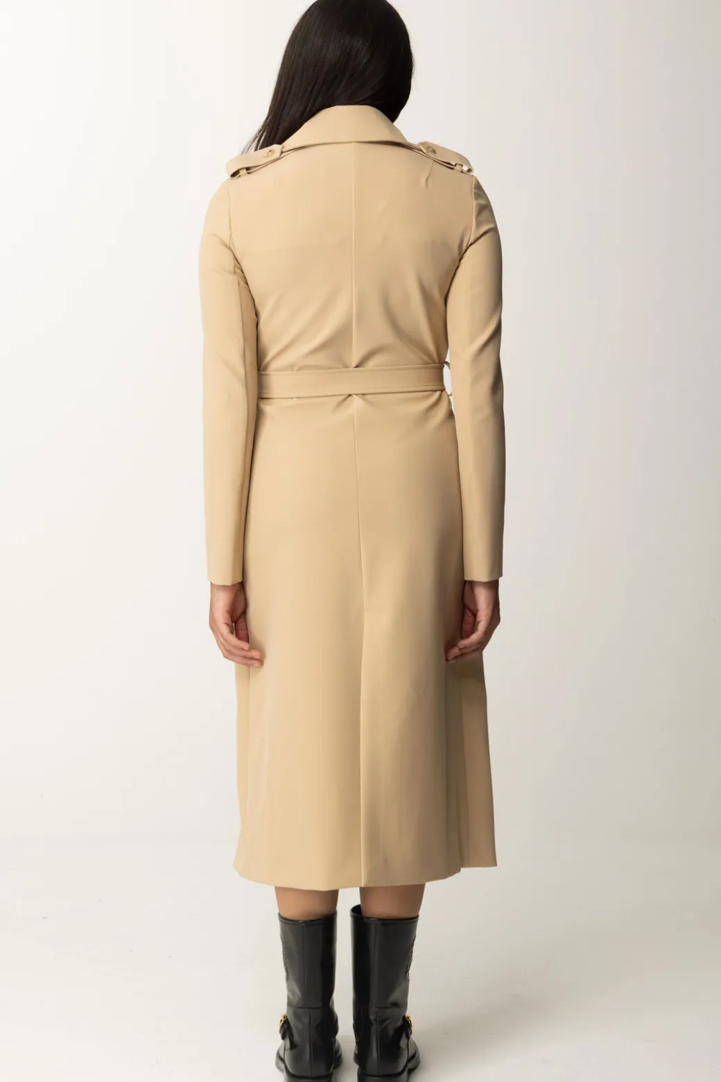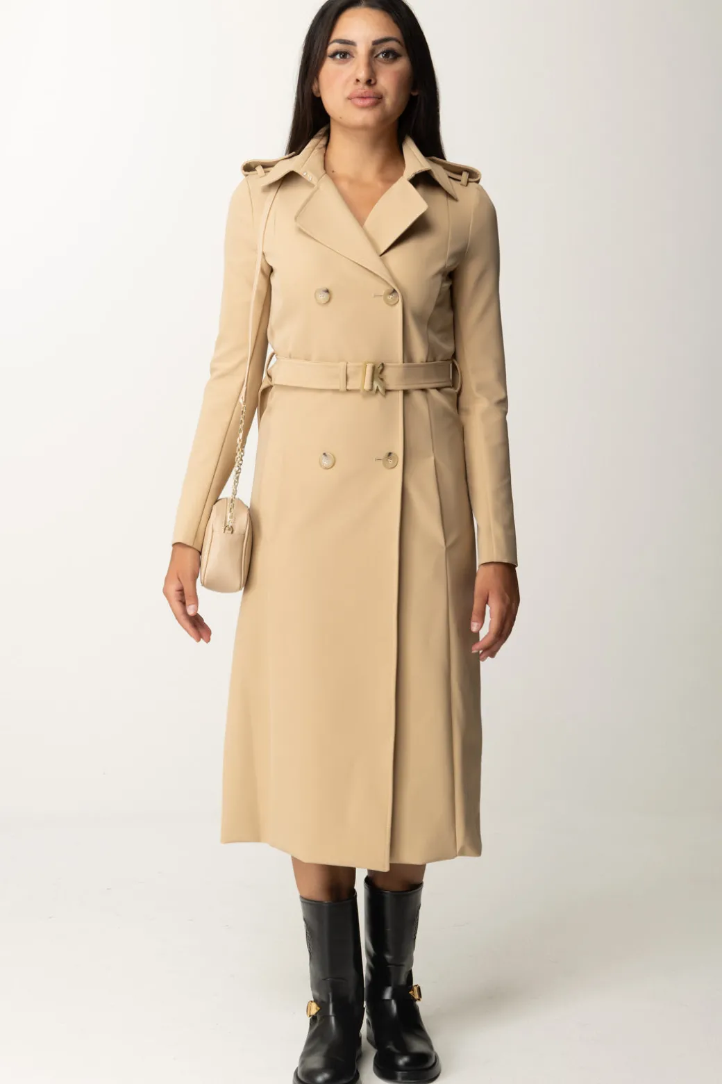 Un trench Patrizia Pepe dal fascino elegante, con una linea leggermente svasata che valorizza la silhouette. La fibbia fly aggiunge un tocco di luce e originalità, rendendo il capo perfetto per ogni occasione. Indossalo su un abito per un look formale impeccabile, o abbinalo a jeans e tacchi per un tocco casual ma sofisticato.