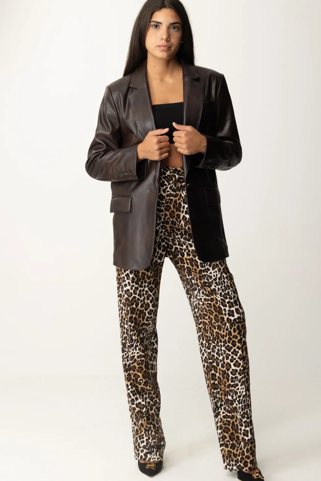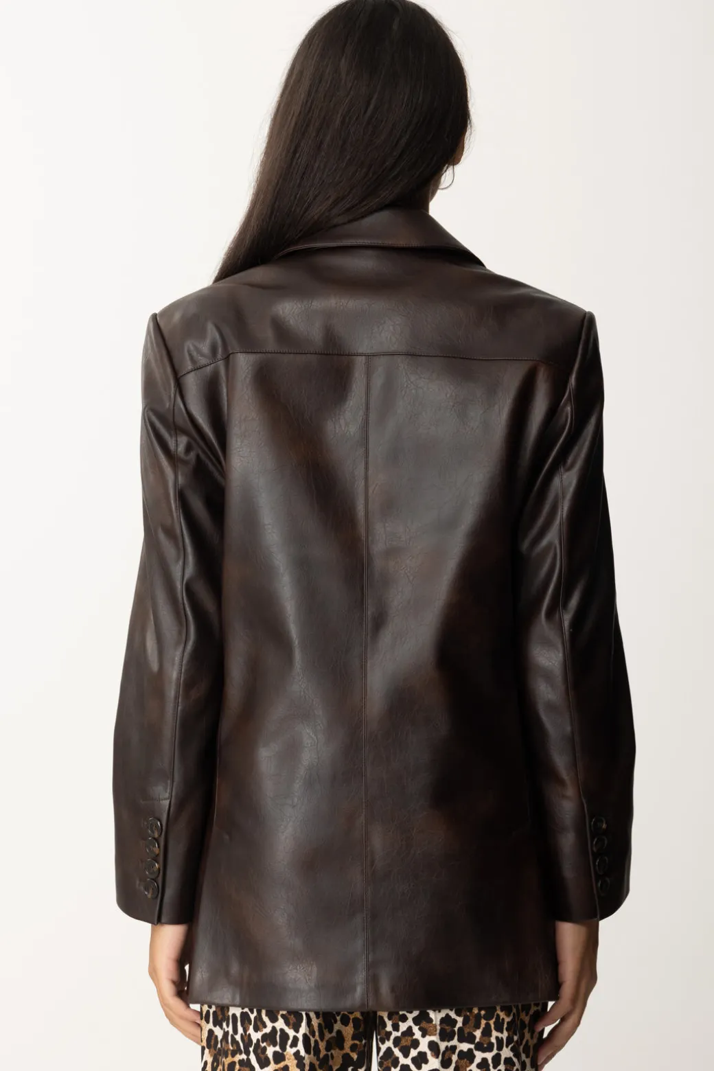 Un blazer Pinko in similpelle che esprime il suo lato più audace. Dal design minimal e dalla la vestibilità leggermente oversize, perfetto per chi cerca un capo di carattereda abbinare anche ai look di tutti i giorni.