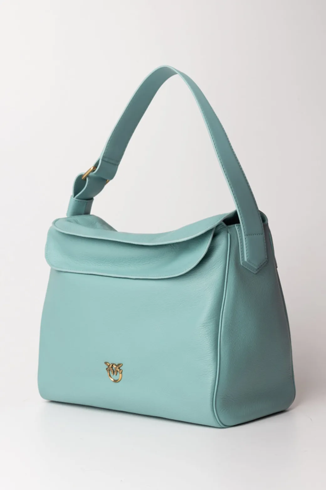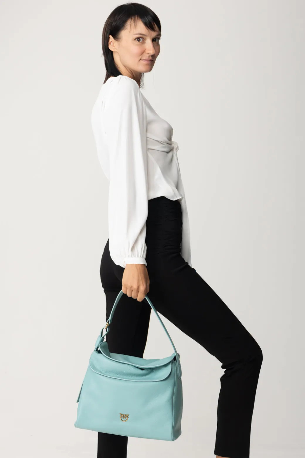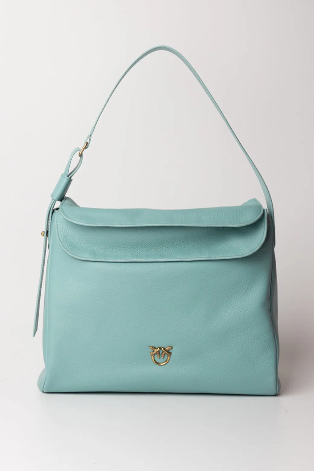 Borsa Pinko modello Leaf Hobo realizzata in pelle effetto martellato, con tracolla in cuoio e un design morbido a trapezio. Si apre con una patta a doppia piega e viene impreziosita dal mini logo Love Birds al centro. Perfetta da indossare tutti i giorni per assicurarti stile e praticità!