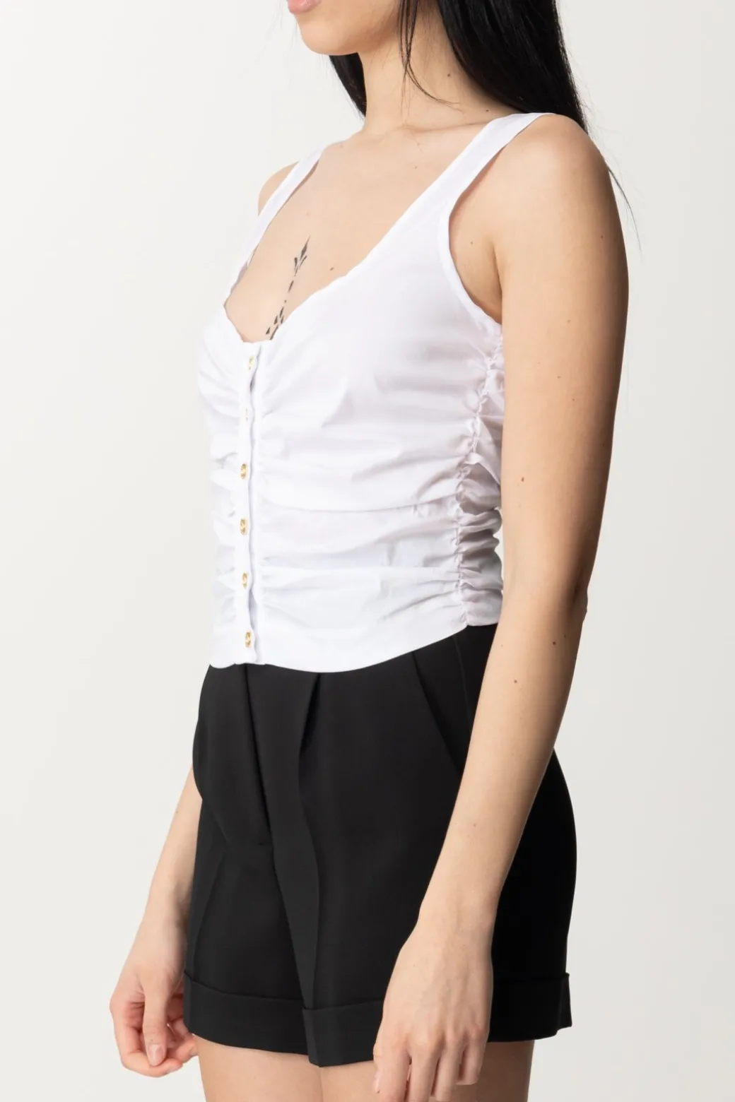 Ma quanto ci piace questa camicetta Pinko! Semplicissima, con delle arricciature ai lati come caratteristica, è proprio questo suo essere minimal ma non troppo a renderla un pezzo unico del tuo guardaroba, da bombinare come vuoi! Perfetta con bottom volorati così come con mise più eleganti, combinala anche con giacche di ogni tipo e goditi il suo effetto frizzantino nei tuoi look.