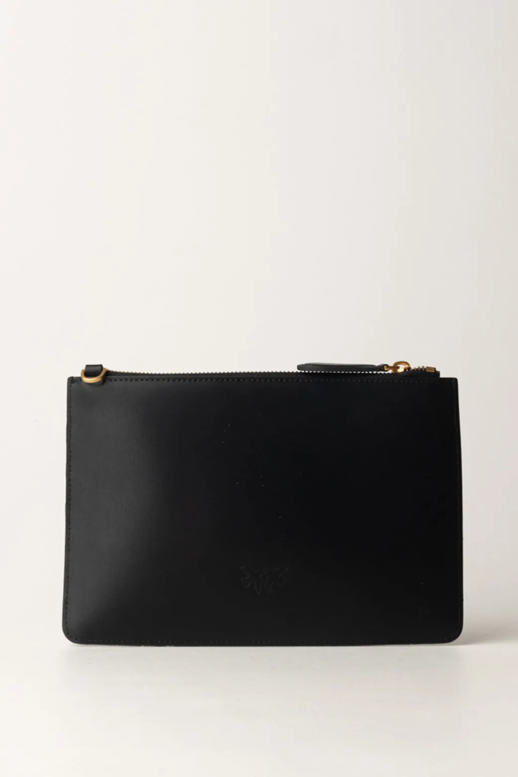 Un piccolo logo Love birds per rivelare a quale brand appartiene questo stile minimal e sofisticato, per un accessorio da sera quanto da evento: una pochette Pinko flat, realizzata in pelle e illuminata dalla presenza di una tracolla a catena oro.