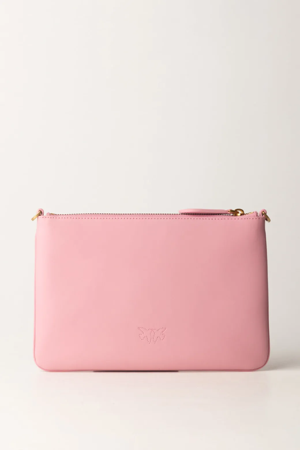 Un piccolo logo Love birds per rivelare a quale brand appartiene questo stile minimal e sofisticato, per un accessorio da sera quanto da evento: una pochette Pinko flat, realizzata in pelle e illuminata dalla presenza di una tracolla a catena oro.