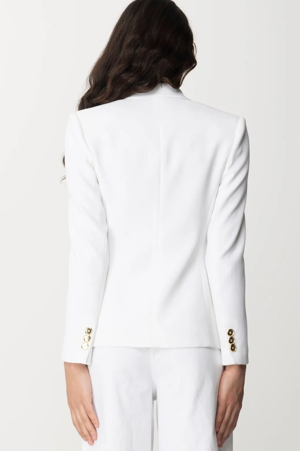 Il blazer come sinonimo di eleganza, di un modo di vestire accurato anche quando casual: così questa giacca Pinko in viscosa stretch diventa un asso nella manica per i tuoi outfit primaverili ed estivi, facile da indossare sia in completo con i suoi pantaloni, sia da proporre con denim e altri bottom per creare uno spezzato dall’allure chic.
