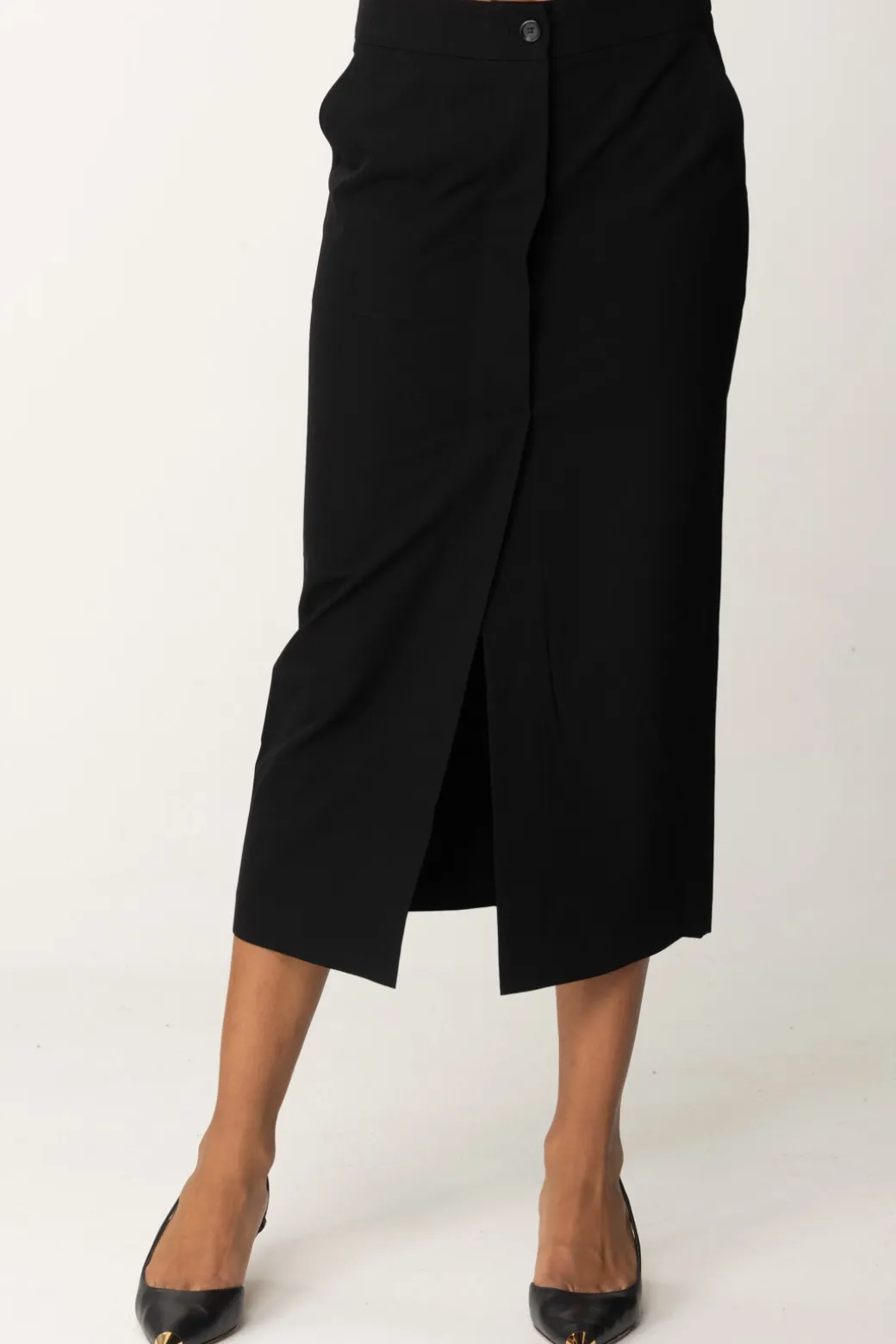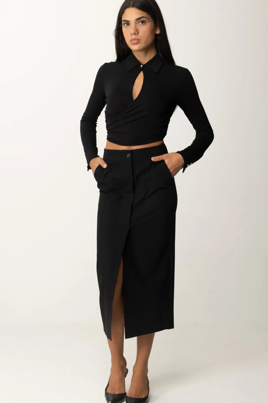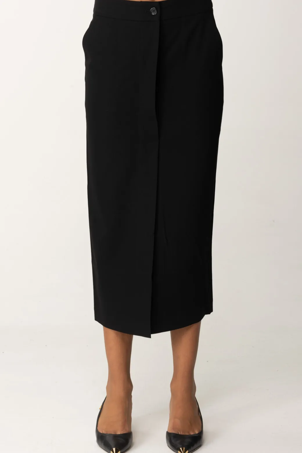 Una gonna Pinko realizzata in tessuto liscio, chisura con bottoni e design lineare. Lo spacco frontale è discreto, il che la prende perfetta con una blusa elegante e décolleté per un look raffinato, oppure con un top aderente e sneakers per un tocco casual ma ricercato.