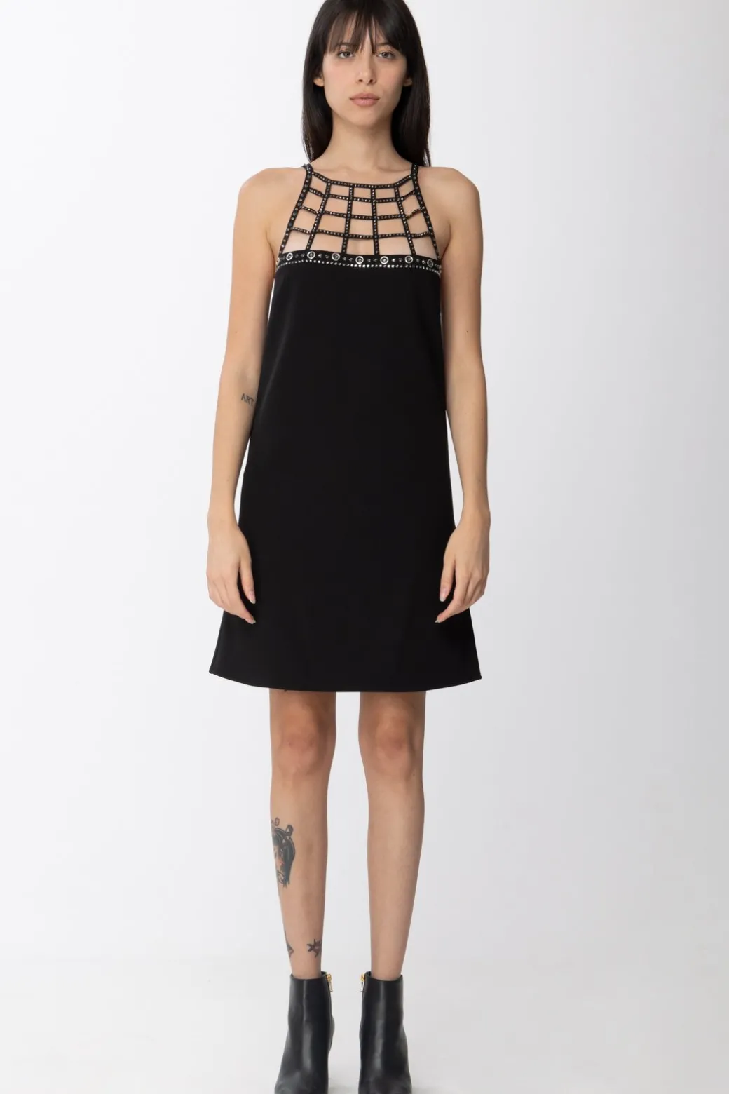 Pinko Mini Abito In Crepe con Applicazioni StrassNERO LIMOUSINE