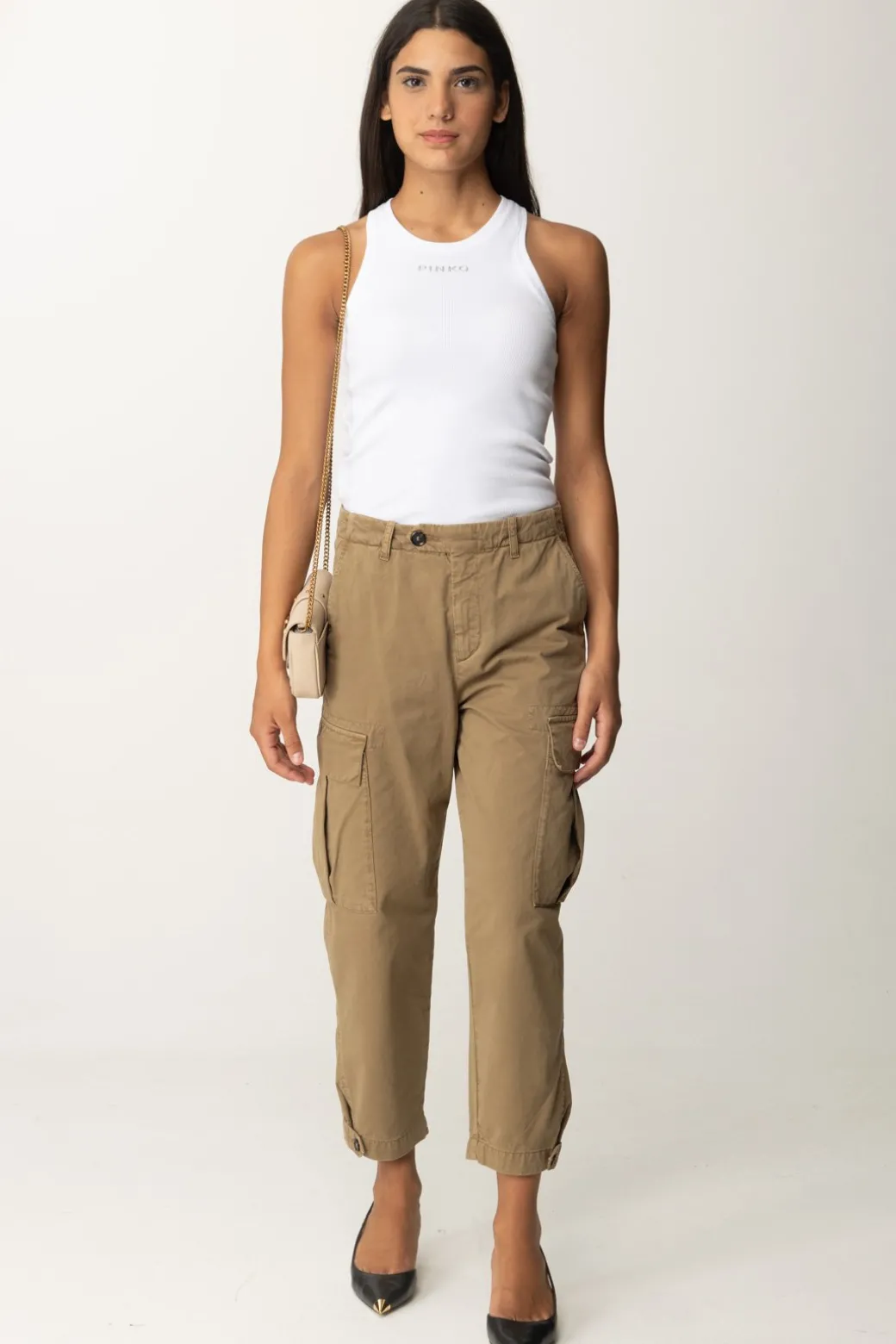 Un trend non ancora tramontato, che ritorna in questi pantaloni Pinko in stile cargo, realizzati in cotone. Un capo trendy e adatto a diverse occasioni, da valorizzare con un tacco – come te lo proponiamo noi! – o godere in relax con delle snakers per un outfit casual e spensierato. Bottoncini alla caviglia e vita regular.