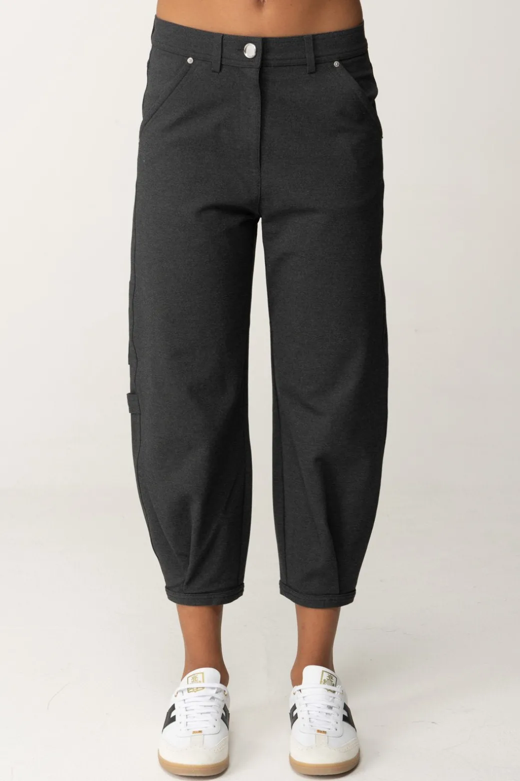 I pantaloni Pinko in stoffa con taglio crop sono un capo essenziale per un look elegante e versatile. La loro semplicità li rende perfetti per ogni occasione. Abbinali a una blusa leggera e mocassini per un look da ufficio, oppure con un top corto e sandali per un’uscita casual.