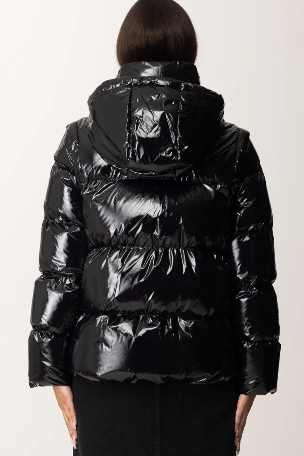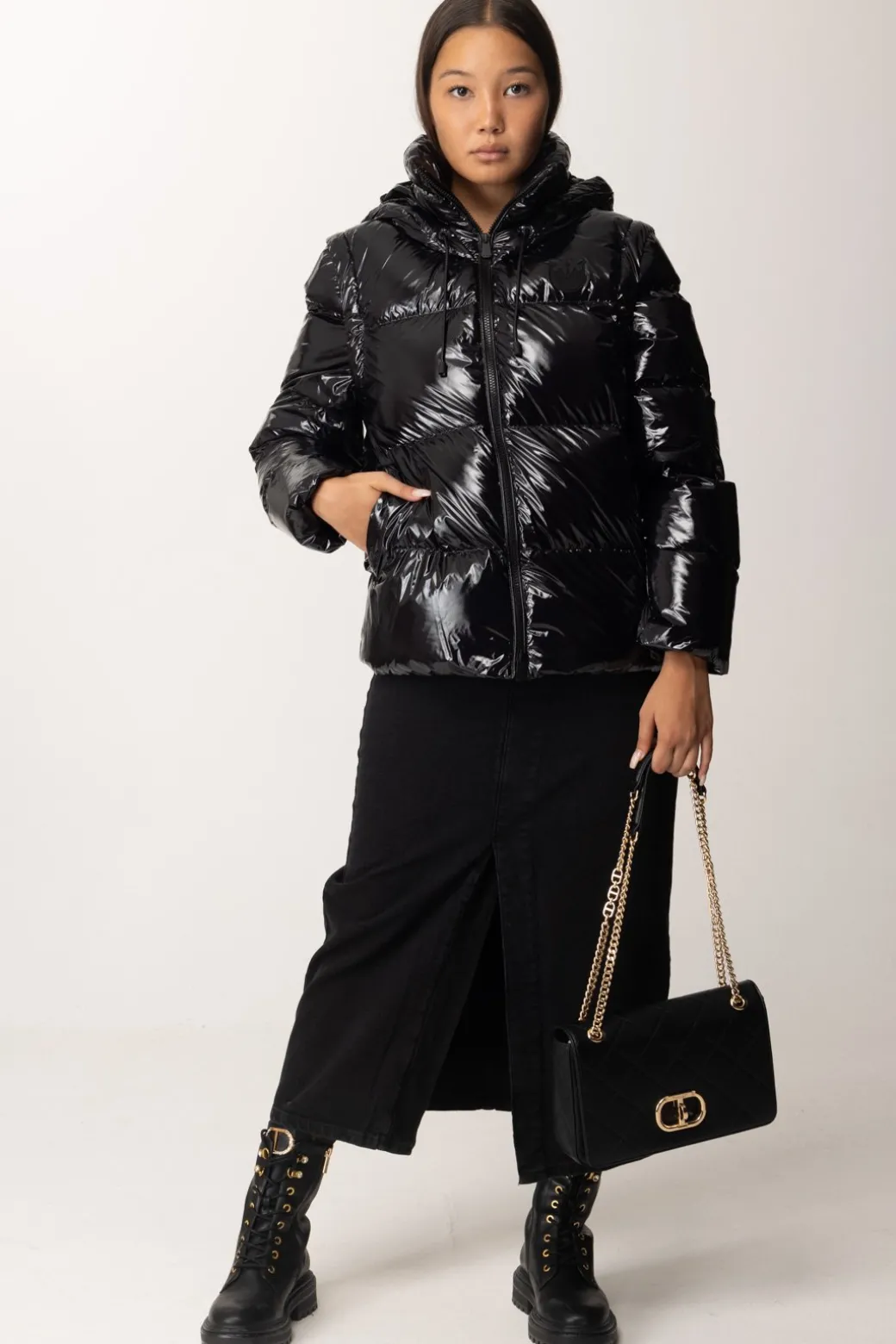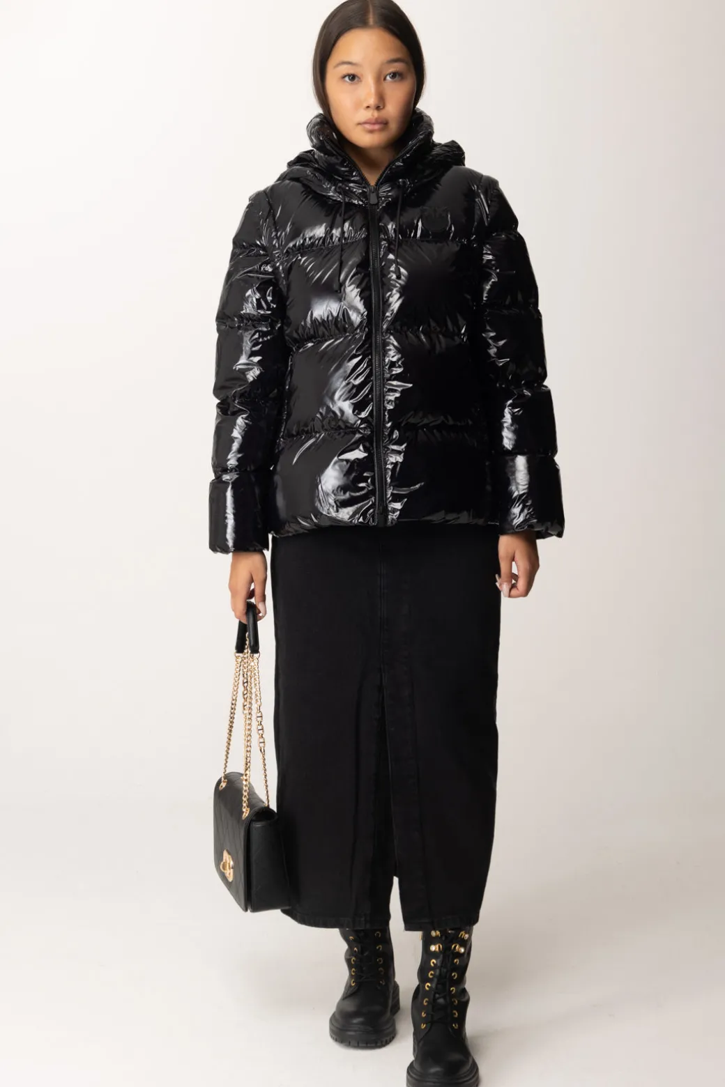 Nessun rischio di sentire freddo, così come nessun pericolo di non essere cool: questo piumino Pinko è un vero must, con il suo design ben imbottito il rivestimento lucido e il cappuccio con coulisse a completare la sua allure urban e quotidiana. Ma quale quotidianità? Quella di una donna super glamour! Chiusura con zip frontale e toppa logo sul petto.