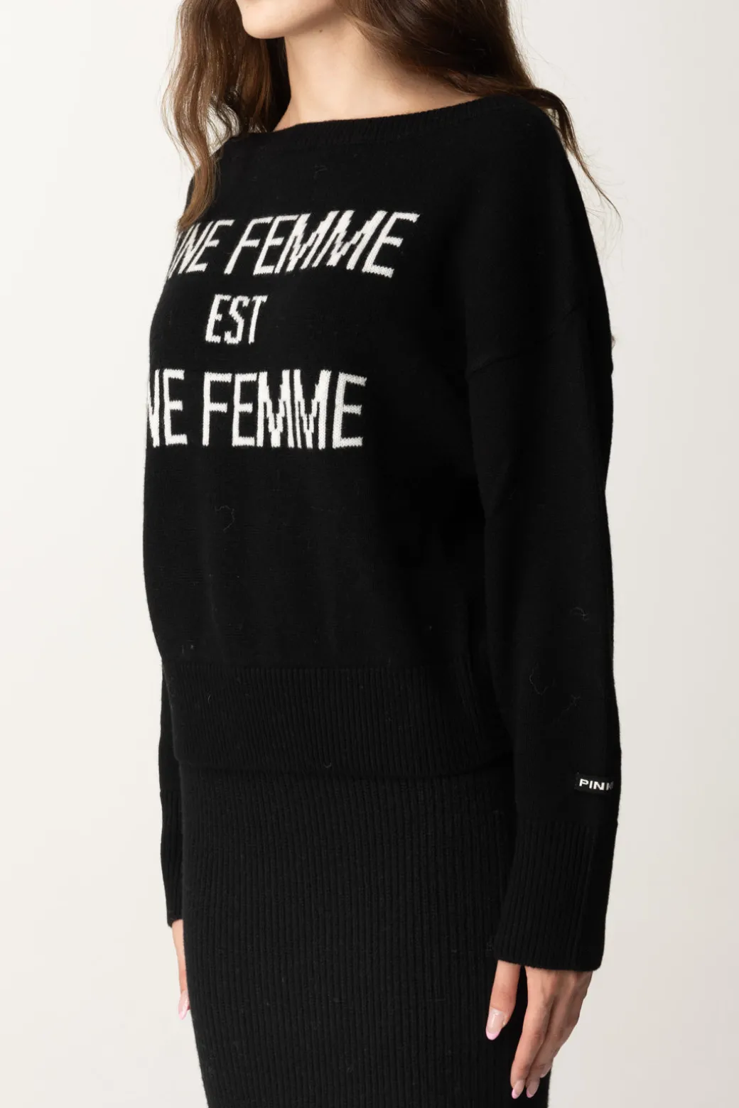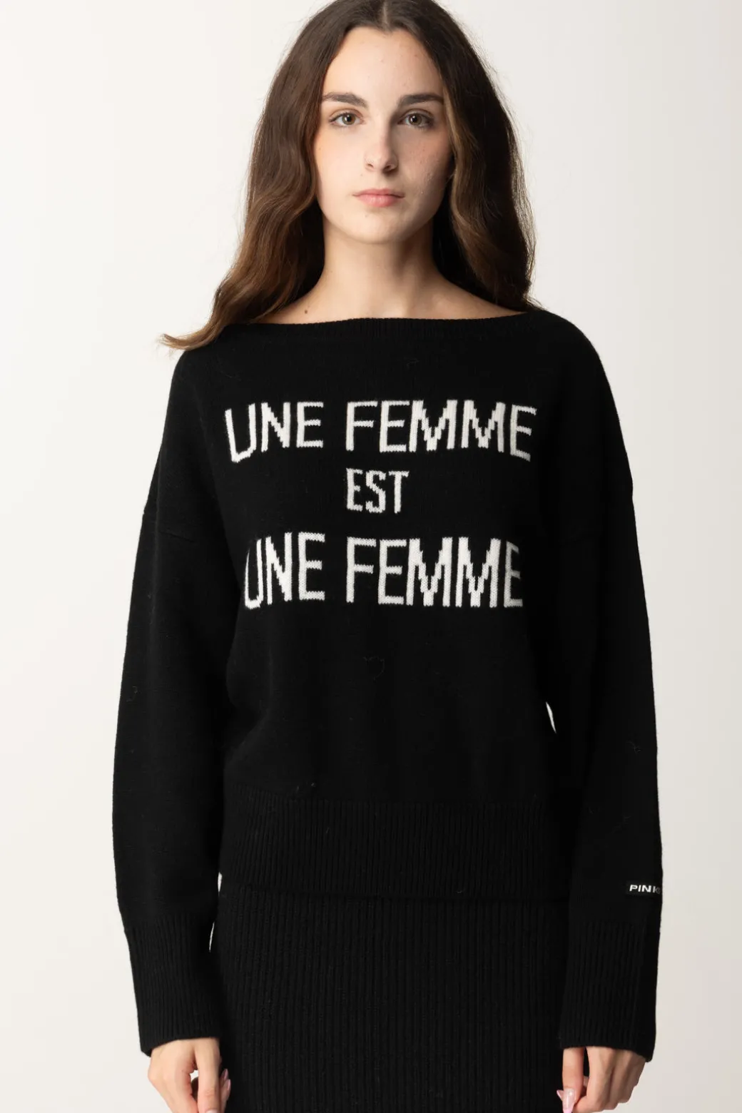 Non c’è verità più vera di quella dichiarata da questo pullover Pinko, ovvero “une femme est une femme”: qualunque sia il suo look, quindi a maggior ragione con una maglia così! Scollo a barca e fit morbido, realizzata in 100% lana per stare comoda e al caldo per tutta la stagione. Abbinala ai tuoi denim preferiti, ma anche a capi in pelle per una versione più glamour del tuo top. Polsini e fondo a costine.