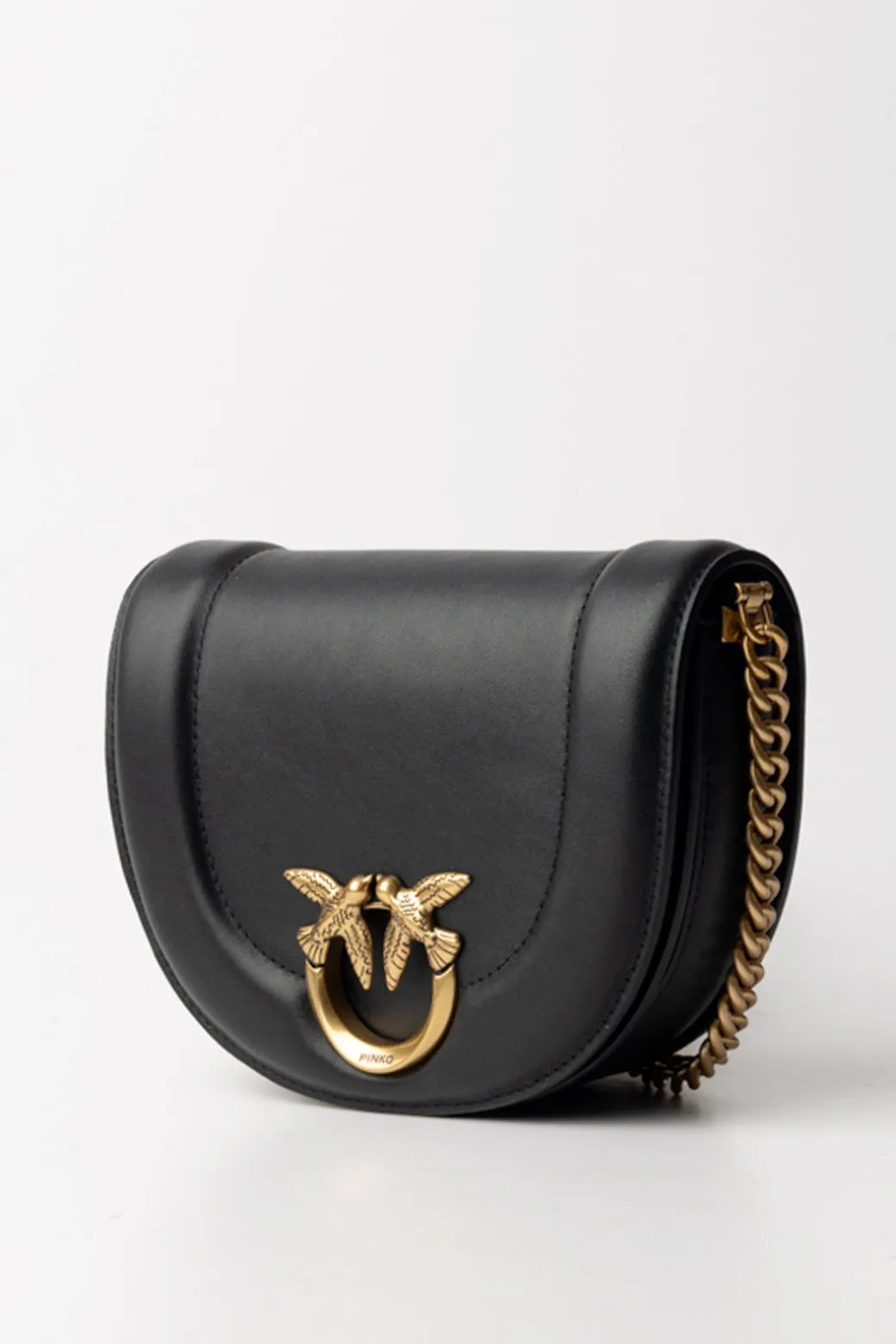 Classic Love Bag Click in versione mini, dalla forma arrotondata e realizzata in pelle liscia in pieno stile Pinko. L’iconica fibbia Love Birds con effetto cut-out è anche qui protagonista, che insieme al design moderno della borsa crea un risultato trendy ed elegante.