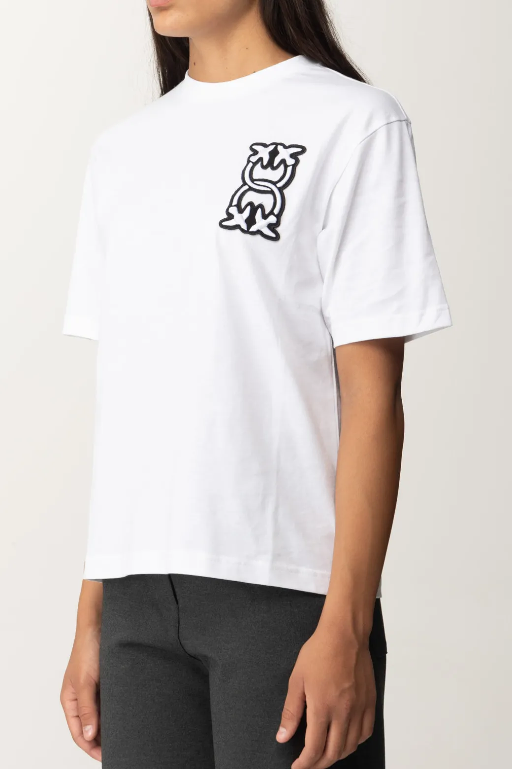 La T-shirt Pinko a maniche corte, caratterizzata dal doppio logo “Love Birds” finemente ricamato su un lato, è realizzata in cotone morbido e traspirante, unisce stile e comfort per un look casual ma ricercato. Perfetta per completare ogni outfit con un tocco di eleganza contemporanea.