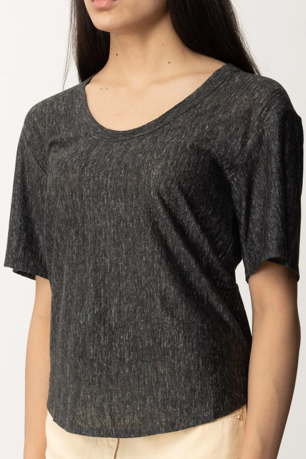 T-shirt Pinko realizzata in lino fiammato e caratterizzata da una texture irregolare che la rende ancora più interessante, perfetta per tantissimi abbinamenti. Amerai indossarla per i tuoi outfit più spensierati, a cui il suo fit oversize aggiungerà leggerezza, ma anche combinarla ai tuoi bottom più ordinari per le tue giornate in ufficio e piene di impegni. Ampia scollatura rotonda e ricamo logo Love Birds sul retro.