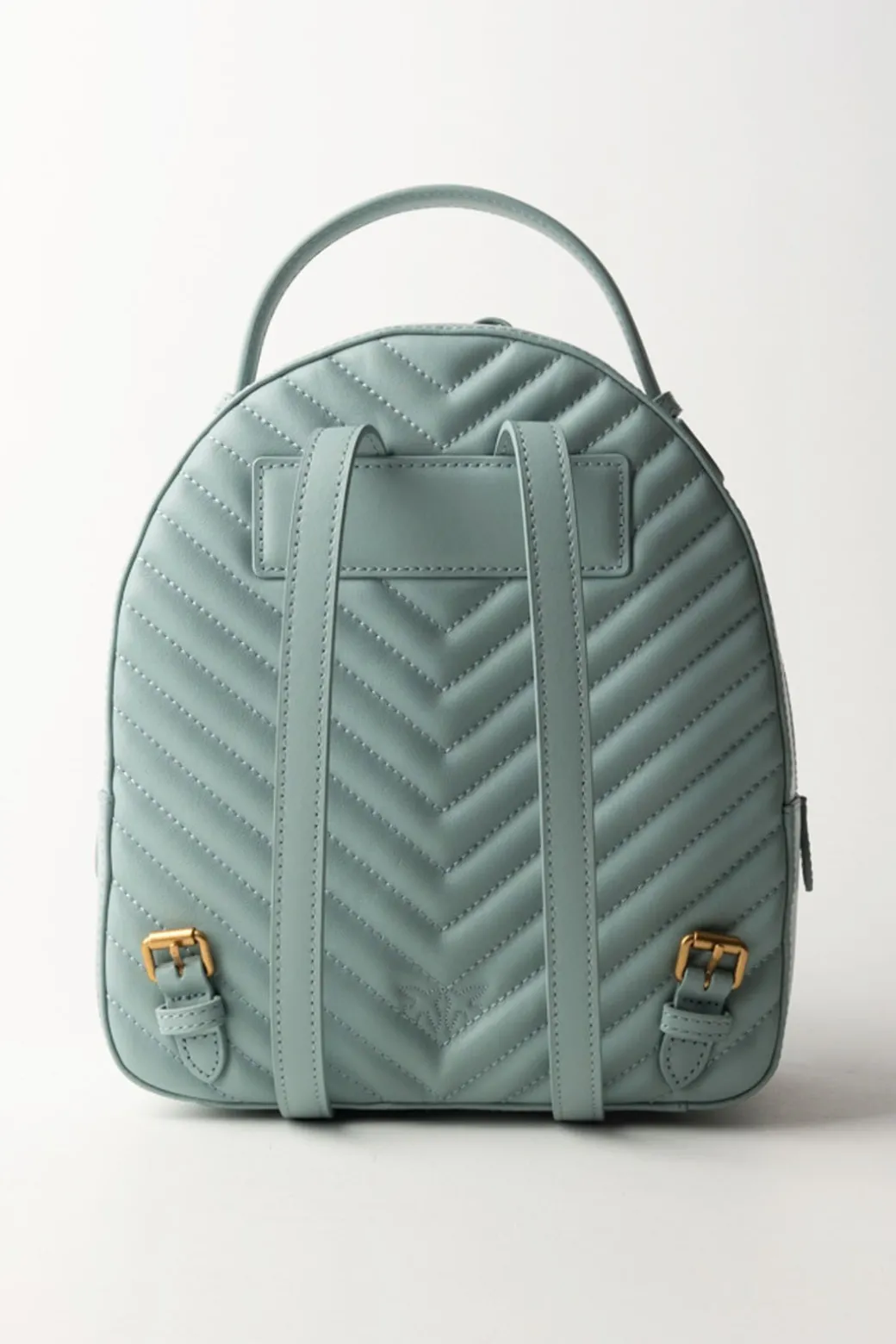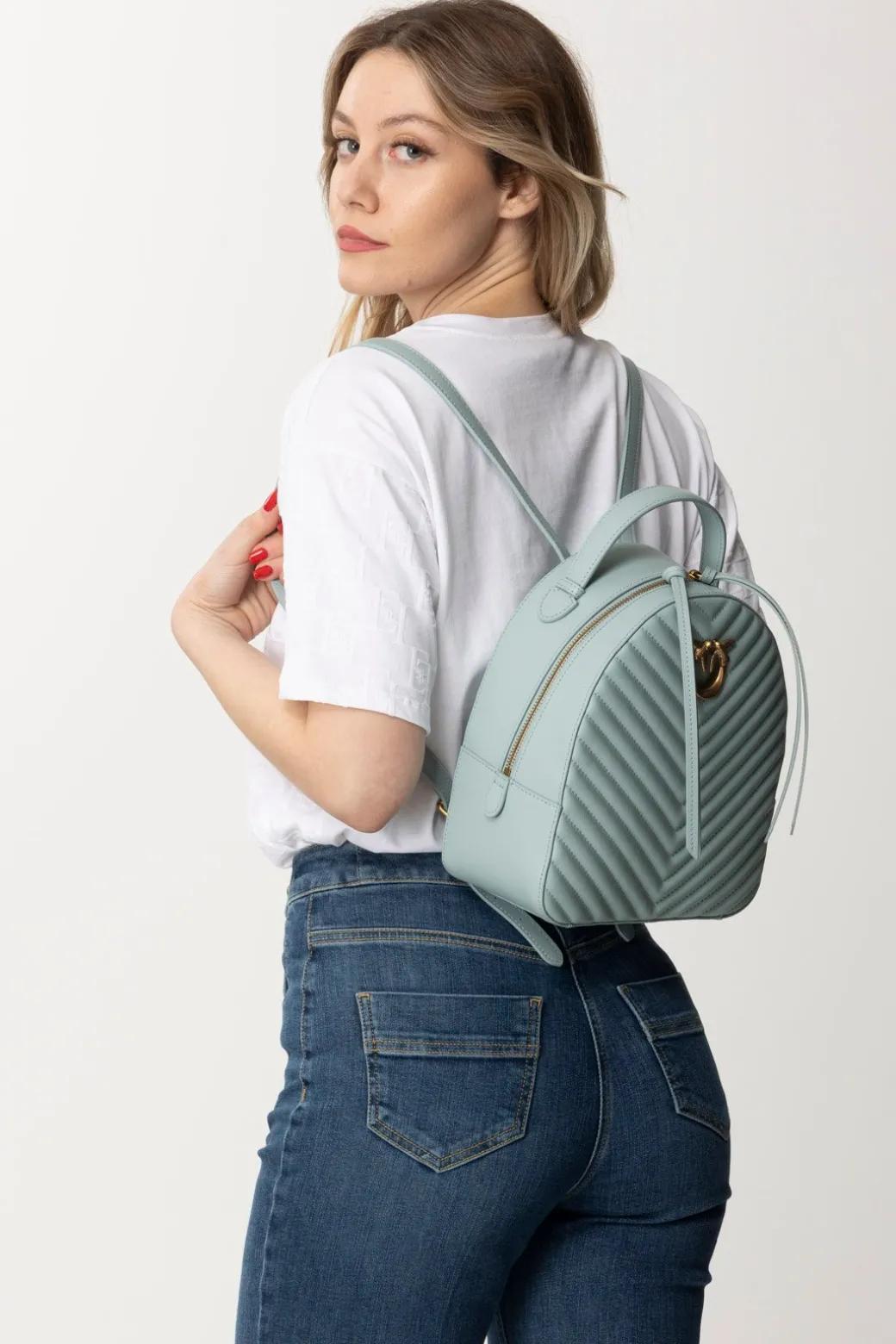 Zainetto Pinko pronto per essere il tuo compagno fidato di stile negli impegni quotidiani o nelle occasioni off-duty. Realizzato in pelle liscia con effetto trapuntato motivo chevron, è illuminato dall’iconica fibbia Love Birds sul davanti e corredato sia da manico che da bretelle per portarlo come vuoi tu.