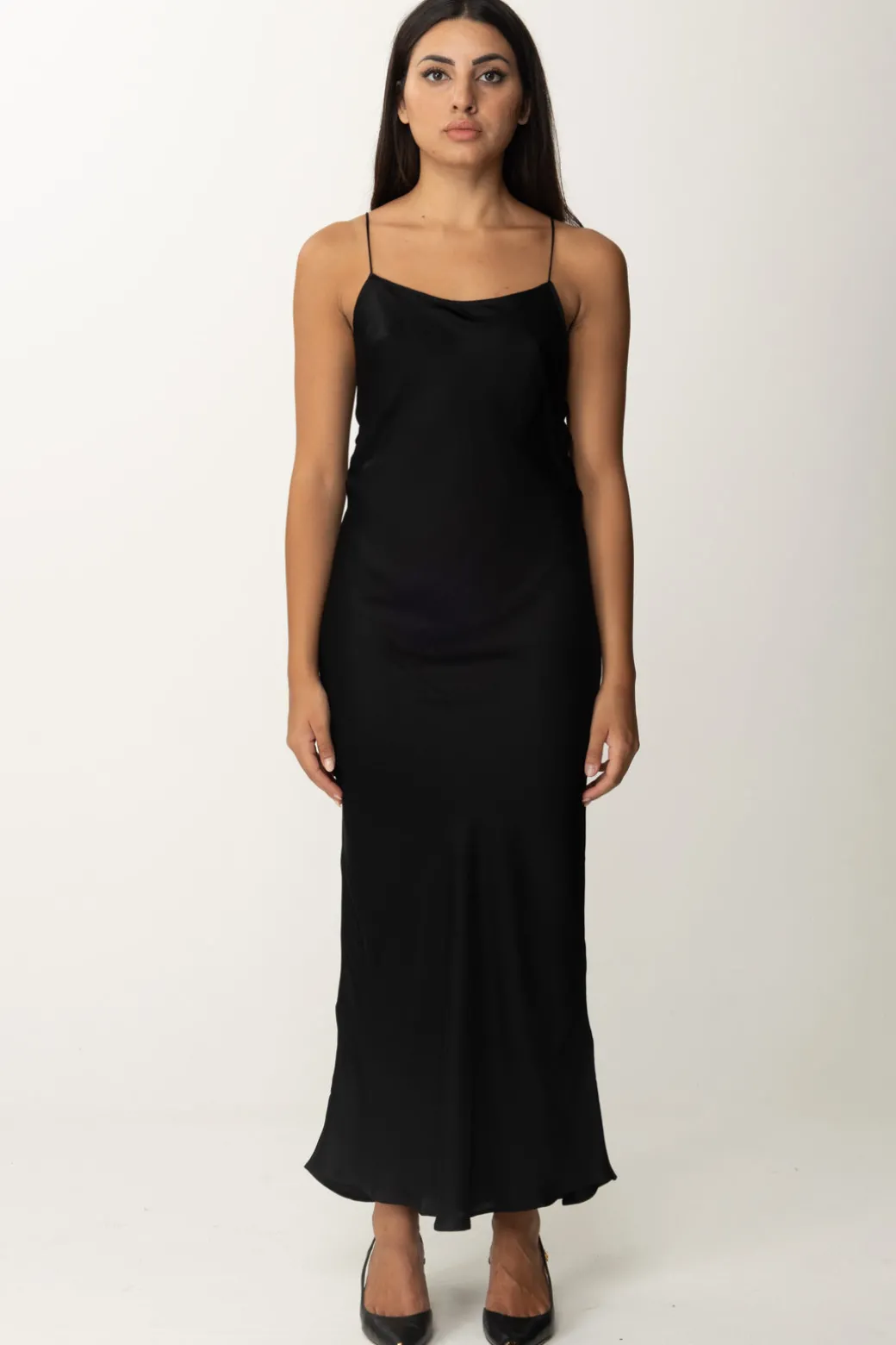 Abito Replay realizzato in viscosa satin, con spalline sottili e un morbido scollo tondo che lascia la schiena quasi scoperta, per un tocco femminile e sensuale. Indossalo con sandali con tacco e gioielli delicati per una serata elegante.