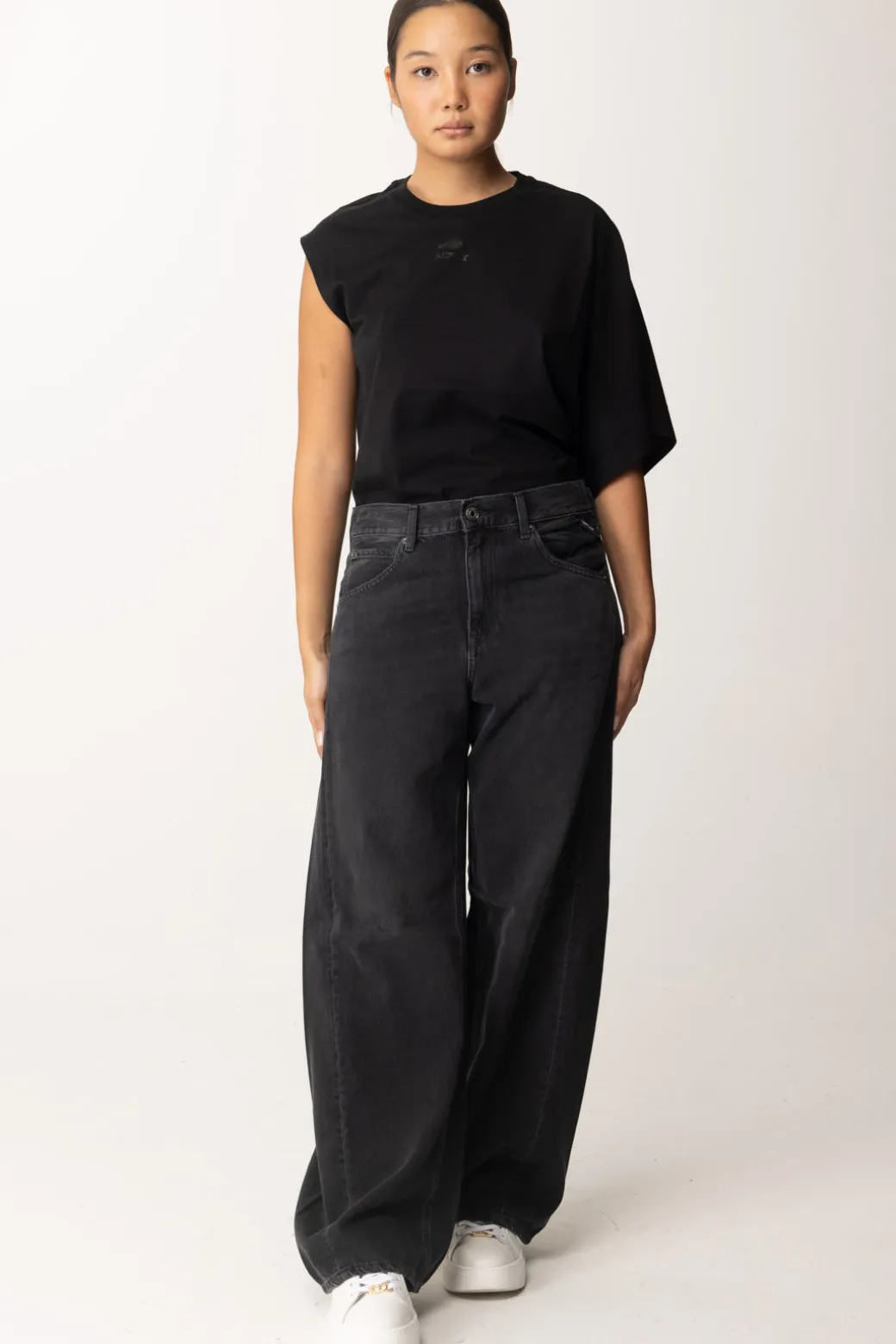 Questa t-shirt Replay presenta un design asimmetrico che la distingue dai classici capi basici. Il taglio irregolare e la linea minimalista la rendono perfetta per un look casual con un twist di originalità. Aggiungi accessori audaci, come una collana o una borsa dalle linee geometriche per completare il look.