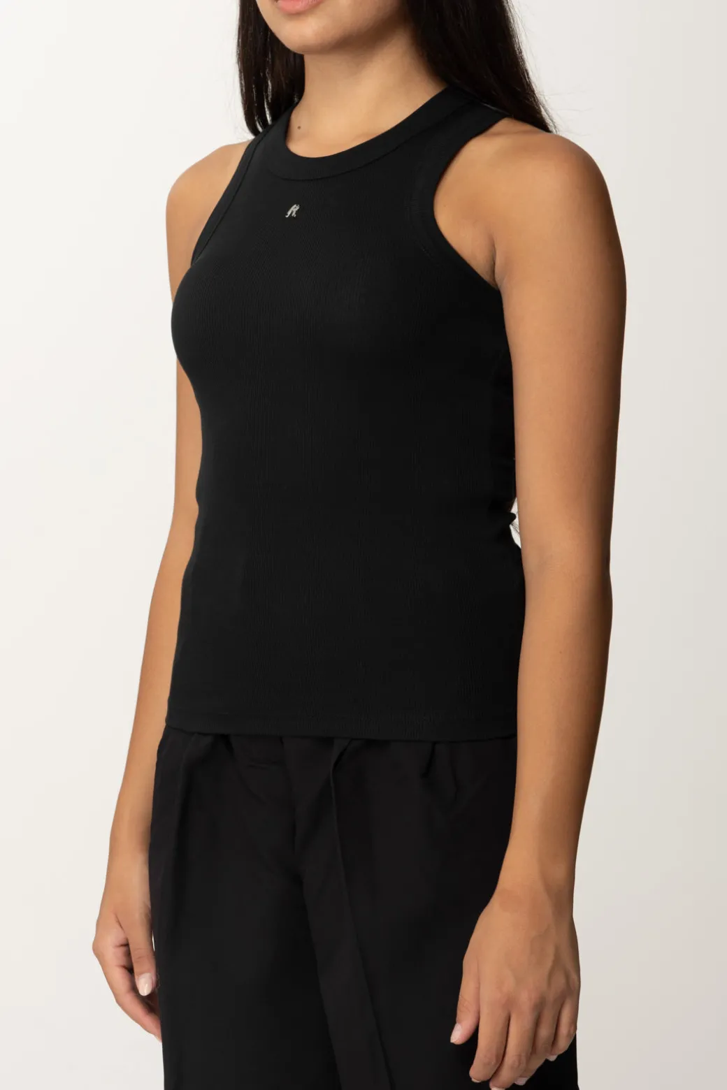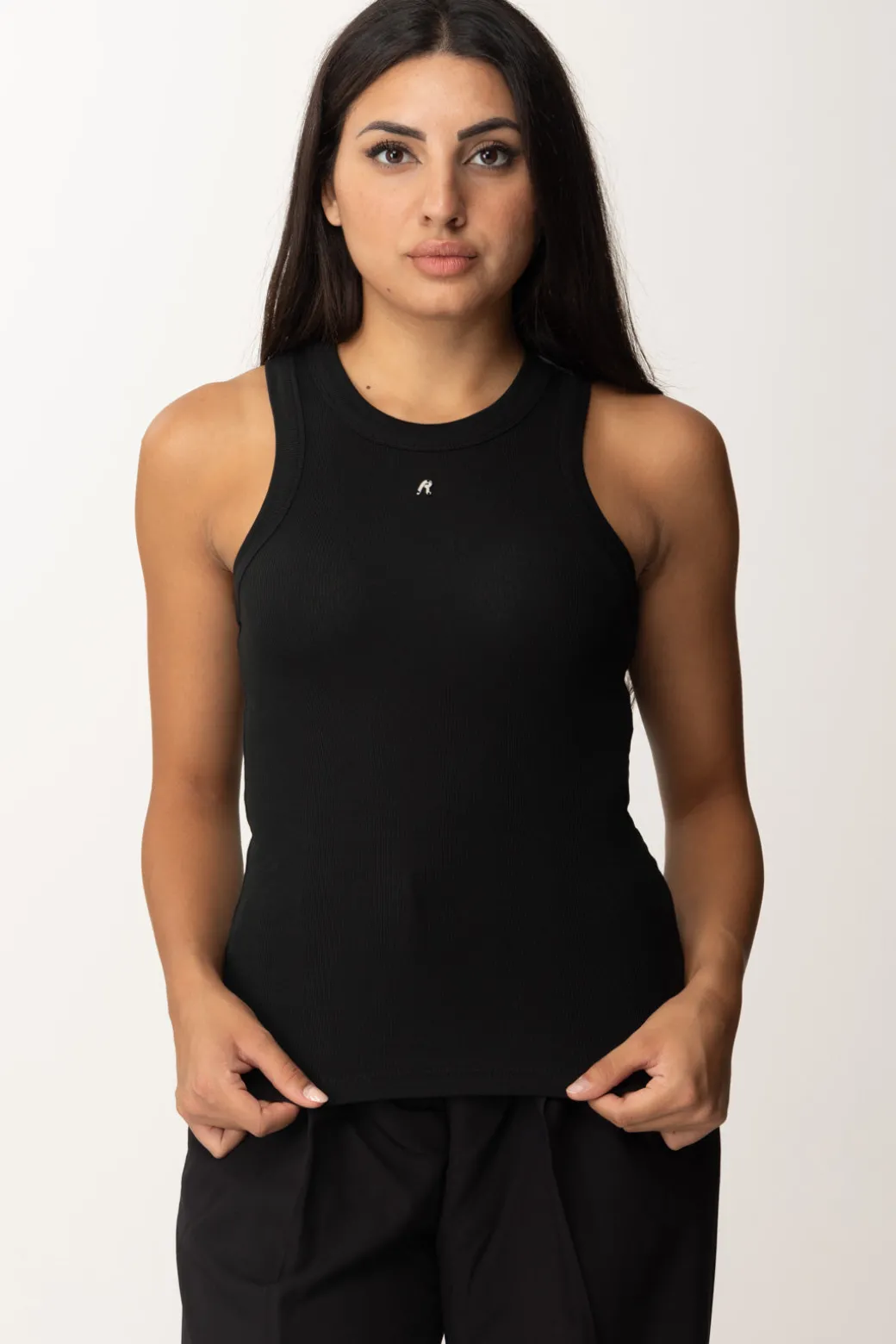 Top Replay dalla vestibilità slim, realizzato in cotone stretch, con scollo all’americana e impunture in rilievo. Il rivetto R è un dettaglio distintivo del DNA Replay. Indossalo con una gonna a vita alta e tacchi per un look elegante, oppure con jeans skinny e sneakers per un outfit casual e trendy.