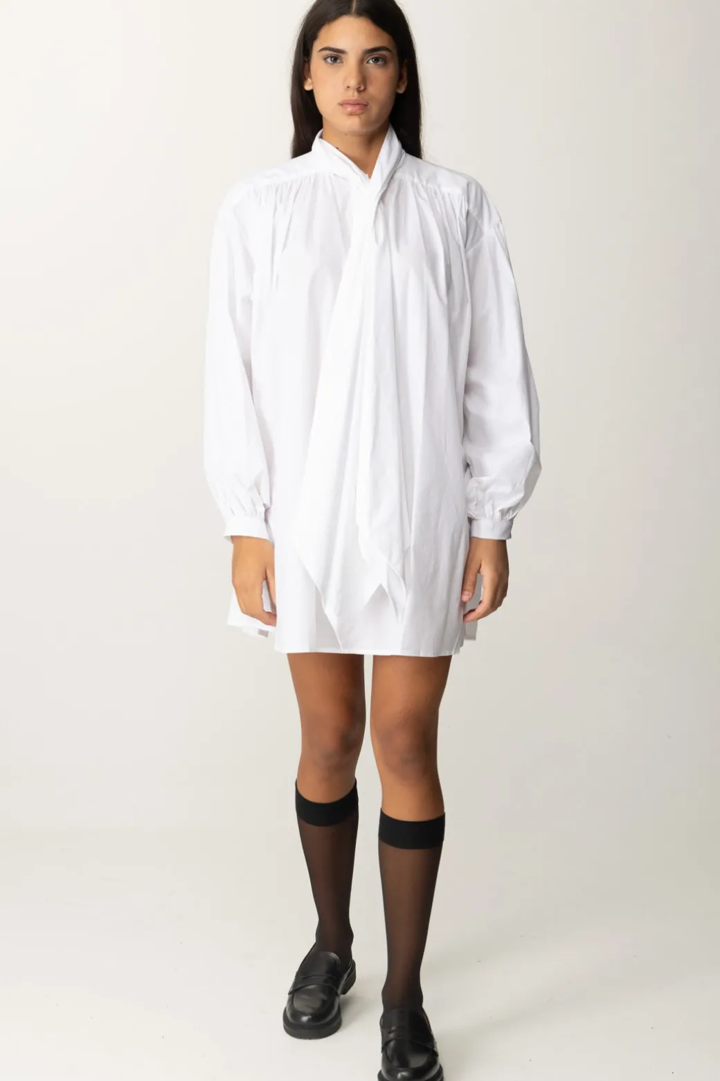 Questo abito chemisier Semicouture è un pezzo must-have dal sapore minimal e chic. Il design fluido e il collo morbido donano un’aria rilassata ma ricercata. Ideale per un look day-to-night, puoi abbinarlo con stivali e mocassini per un tocco urban, o con dei sandali per un effetto più casual.