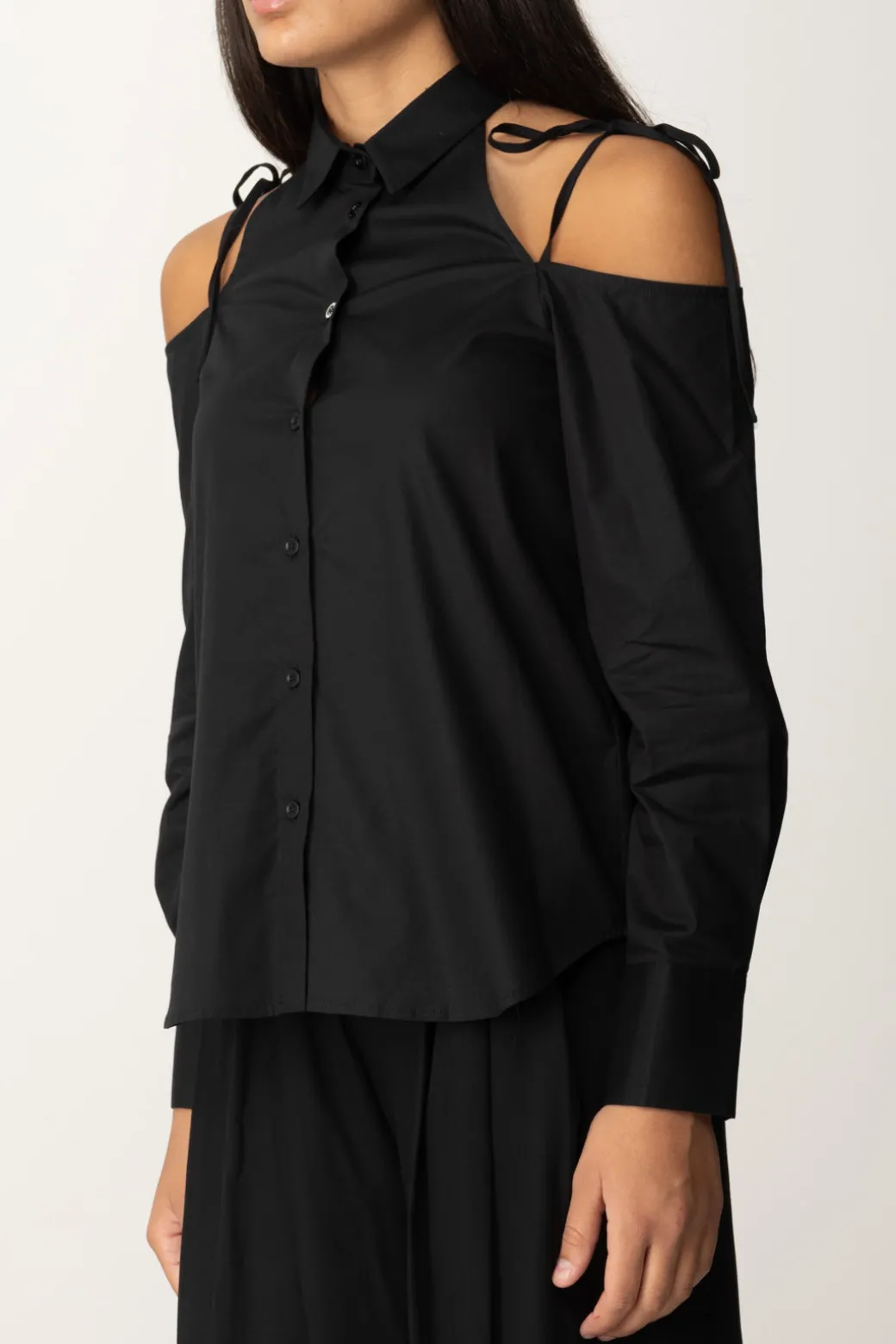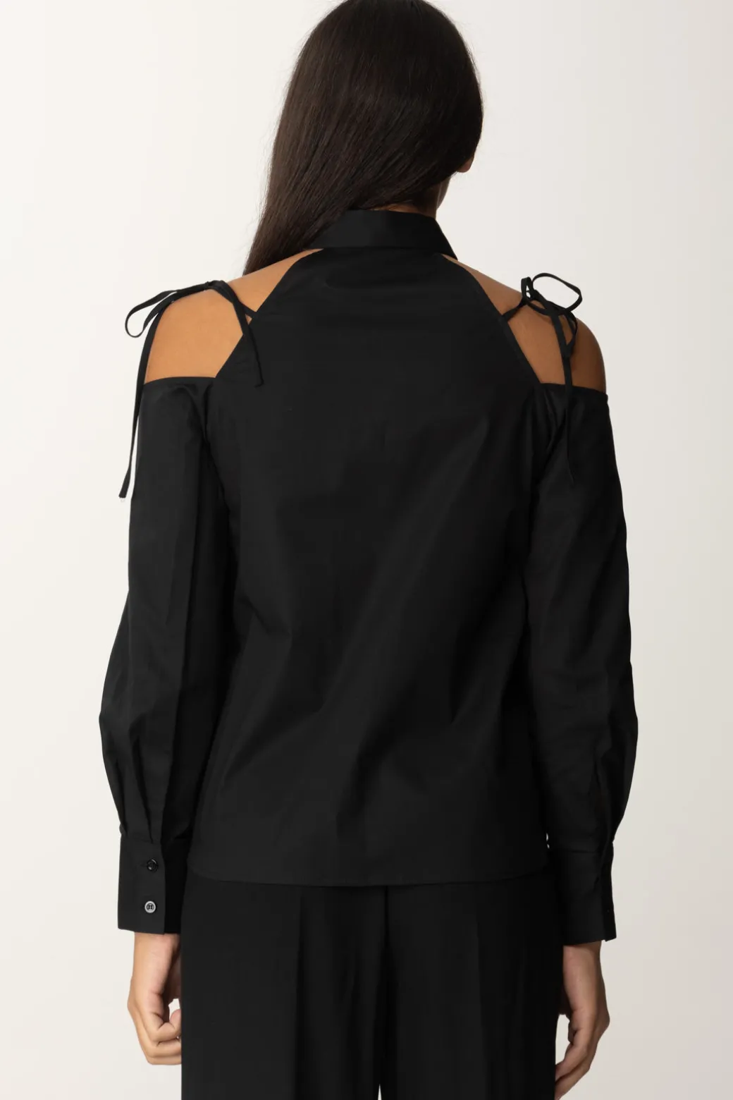 Camicia Semicouture raffinata e femminile, con un twist originale che la rende differente dal modello classico. L’apertura sulle spalle con fiocchetti crea un gioco di stile audace che si sposa perfettamente con il resto della silhouette. Ideale da indossare con jeans o pantaloni per un look d’effetto ma con un tocco originale.
