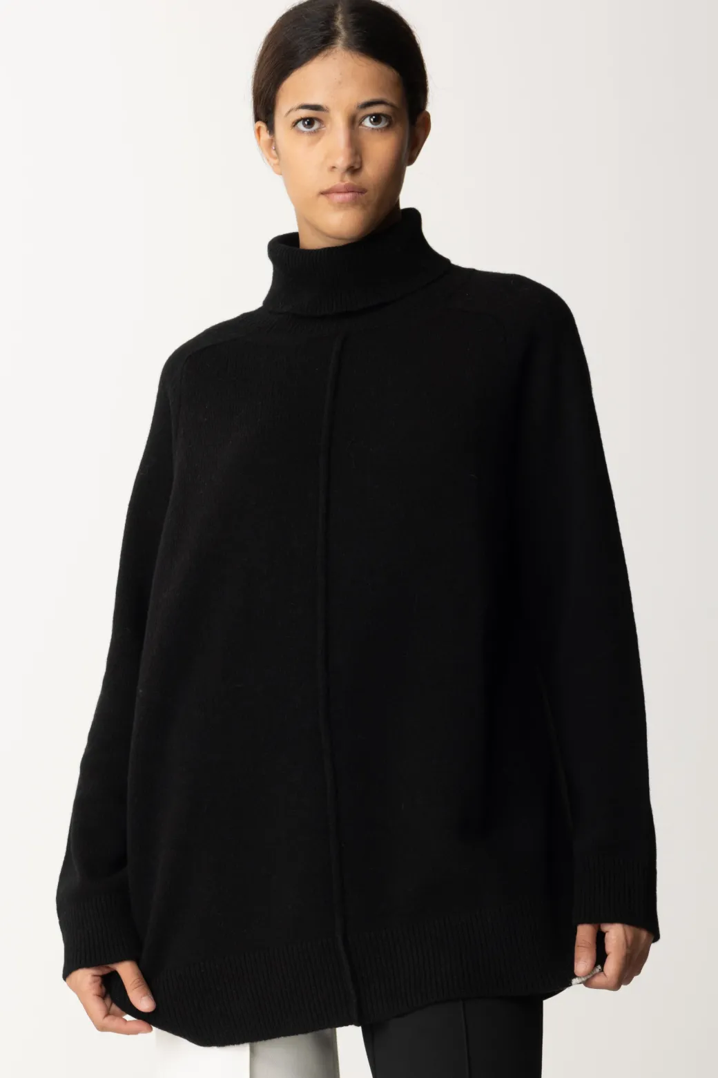 Semicouture Dolcevita In Lana con Spacco Sul RetroNERO