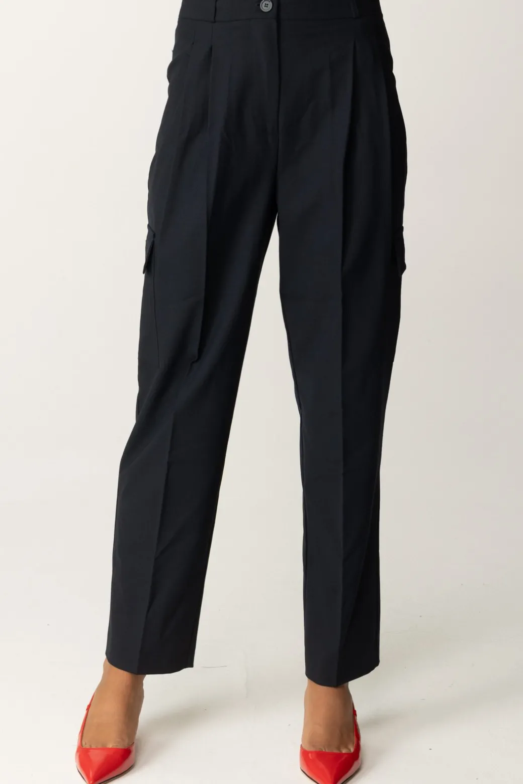Mood contemporaneo per questi pantaloni Semicouture che mettono insieme un taglio classico con pinces frontali con i tasconi laterali tipici del modello cargo per un risultato super cool. In fresco lana, la vita alta con passanti per cintura ti consente di personalizzare ancora di più i tuoi look.