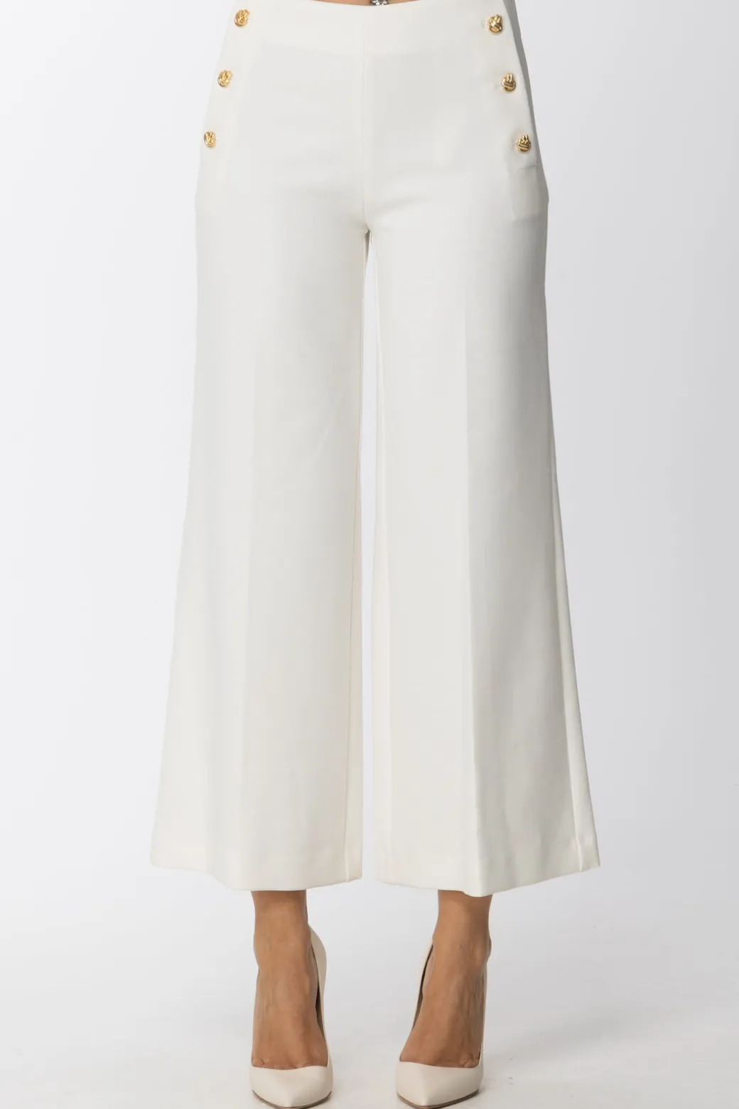 Simona Corsellini Pantaloni a Palazzo con Bottoni LateraliWHITE
