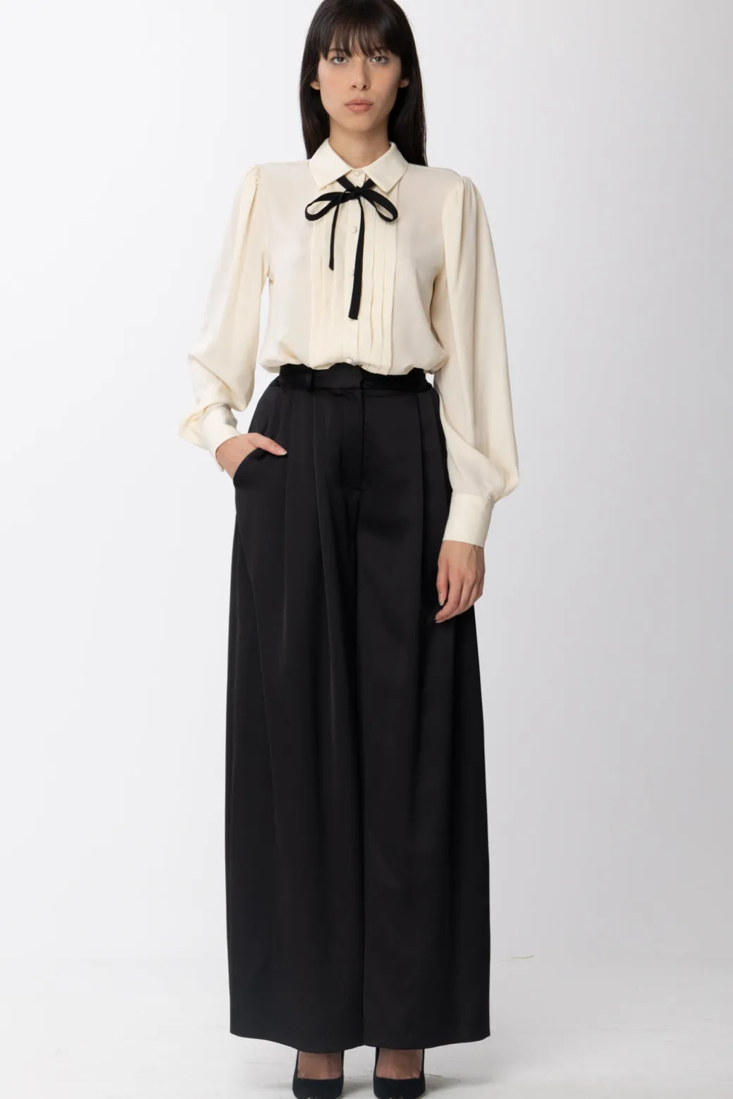 Simona Corsellini Pantaloni Palazzo a Vita AltaNERO