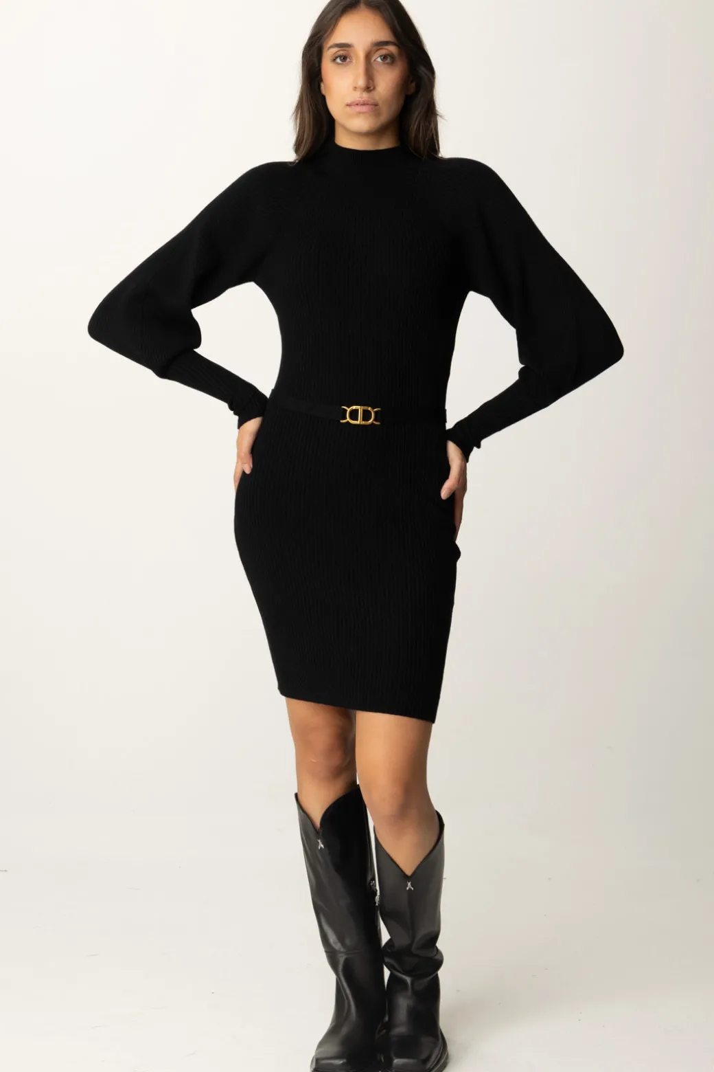 Un classico intramontabile, questoabito Twinset in maglia è perfetto per le giornate fredde e aggiungerà uno stile cozy-chic al tuo look. Il tessuto a costine, le maniche leggermente ampie e la cintura in vita con logo sono piccoli dettagli che lo rendono ancora più chic, perfetto sia per il giorno che per la sera.
