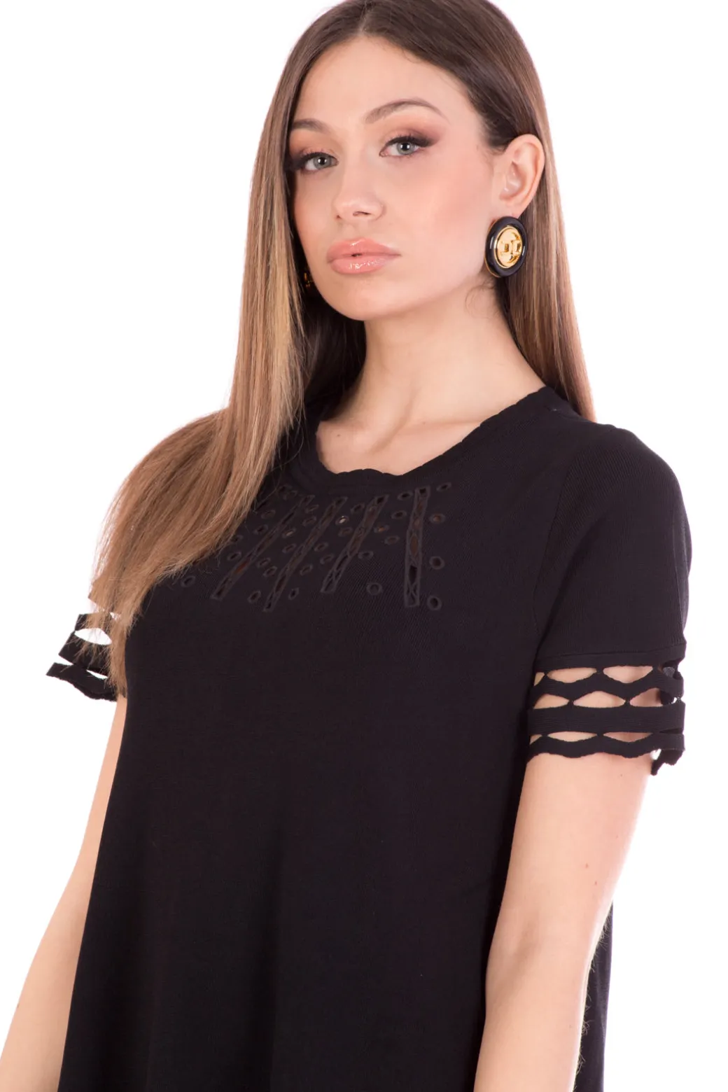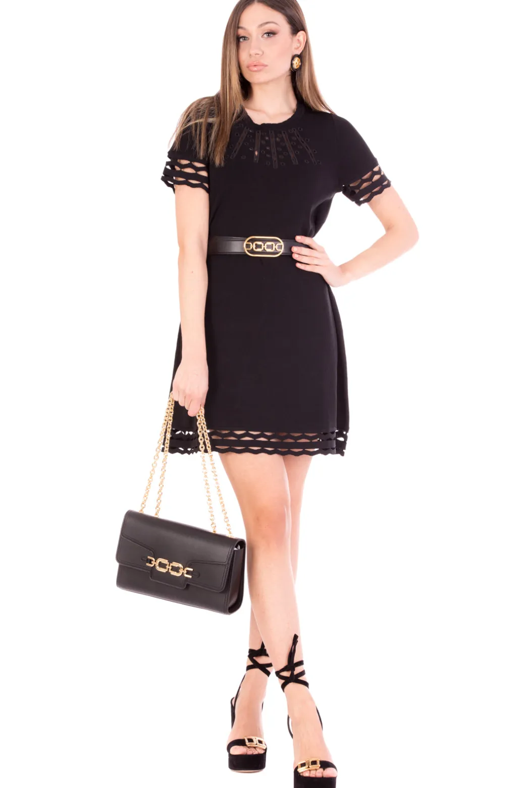 Twin-set Abito In Maglia a Sacchetto Orli TraforatiNERO