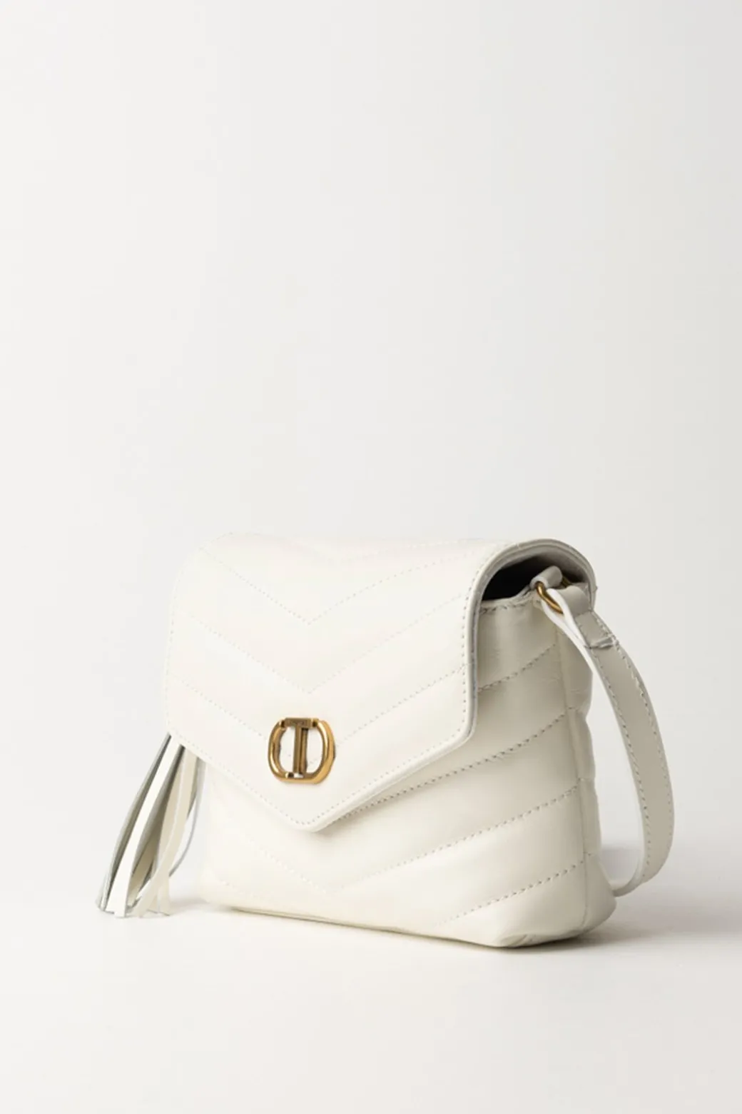 Piccola e romantica per i tuoi outfit più “dreamy”: questa borsa a tracolla Twinset è un piccolo tocco di grazia per i tuoi look, disponibile in diversi colori per permetterti di trovare quello che più si adatta a te. Realizzata in vera pelle trapuntata con disegno chevron, è corredata da una nappa e da dettagli in oro – come il logo Oval T – che la rendono ancora più preziosa.