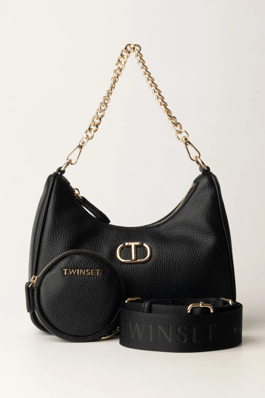 Borsa Twinset piccola ma preziosa: presenta un piccolo manico a catena che si abbina al logo Oval T gold posto sul davanti, e altri accessori come un piccol oportamonete di roma rotonda e una tracolla rimovibile in grosgrain per dare un tocco più casual al tuo accessorio. Perfetta per una serata fuori, indossala con un abito elegante e tacchi alti per completare il look!