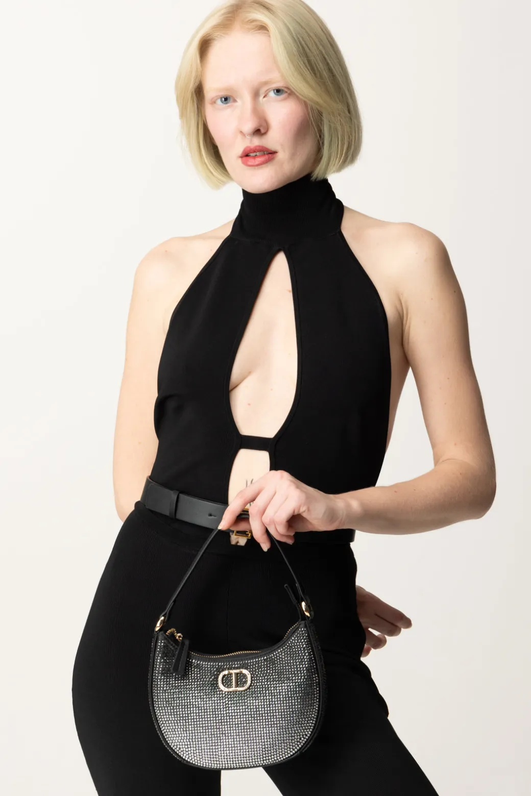 Una borsa che è tutta un luccichio! Una borsa hobo Twinset, dalla shape a mezzaluna da cui il nome “moon”, interamente ricoperta di strass in gradazione di colore per aggiungere glamour ai tuoi look invernali. Piccola ma d’impatto, l’accessorio che amerai per i tuoi party.