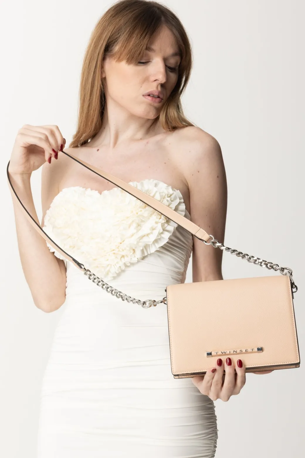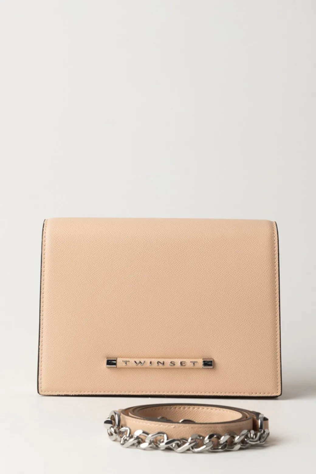 Borsa a tracolla Twinset di dimensioni piccole ma non minimal: un accessorio discreto e stiloso per completare i tuoi outfit in qualsiasi momento della giornata, con pratici scomparti interni e chiusura con patta, su cui trovi il logo lettering del brand. Vuoi renderla ancora più chic? Portala con te come una pochette sganciando la tracolla a catena argentata e indossala insieme alle tue mise più eleganti.
