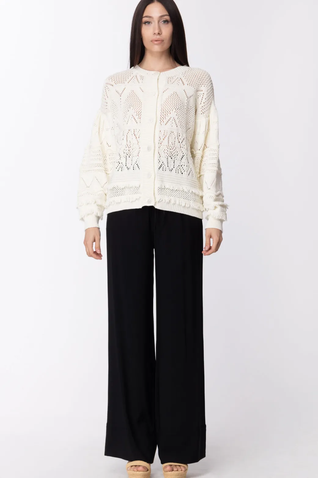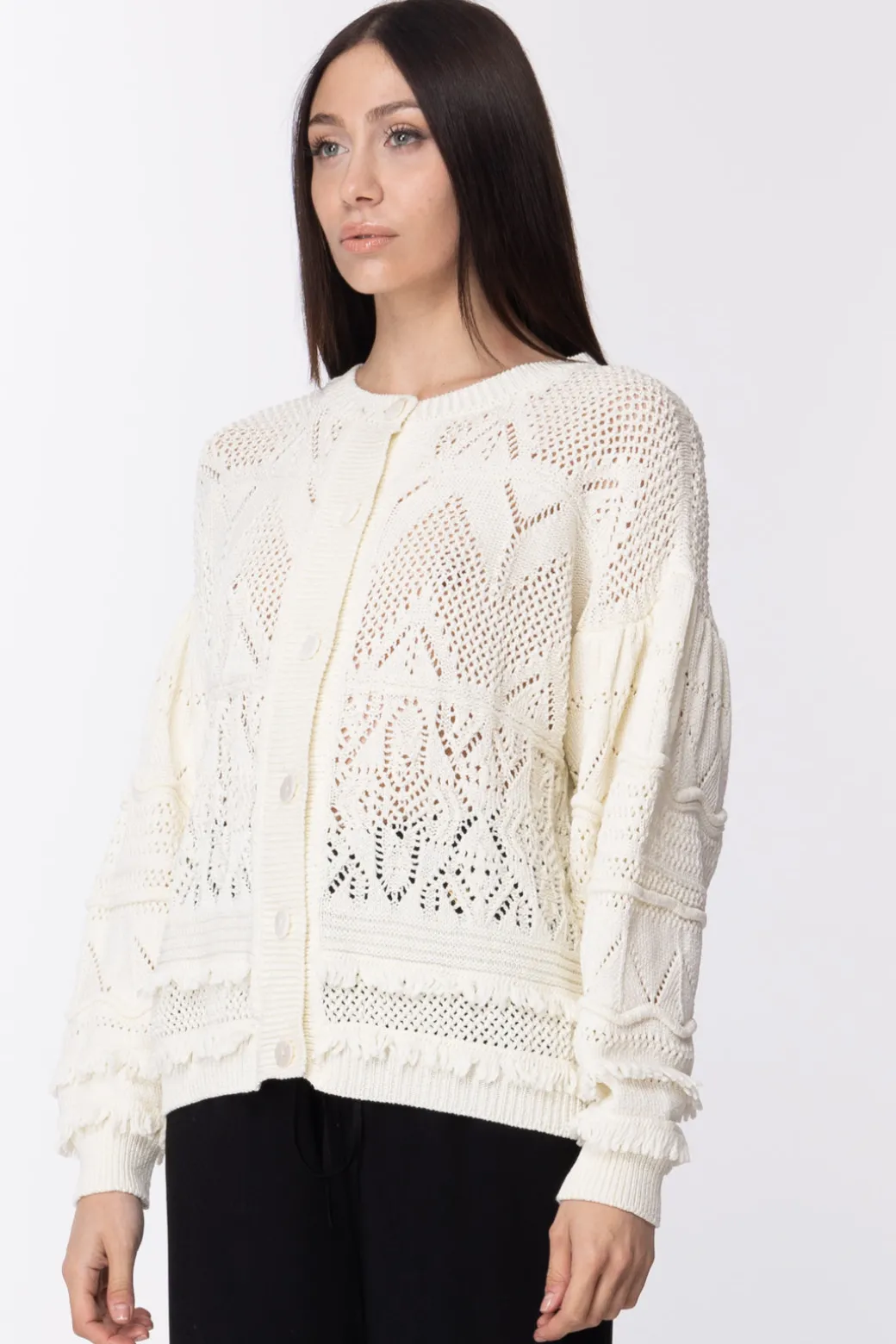 Twin-set Cardigan Crochet e Applicazione FrangeNEVE