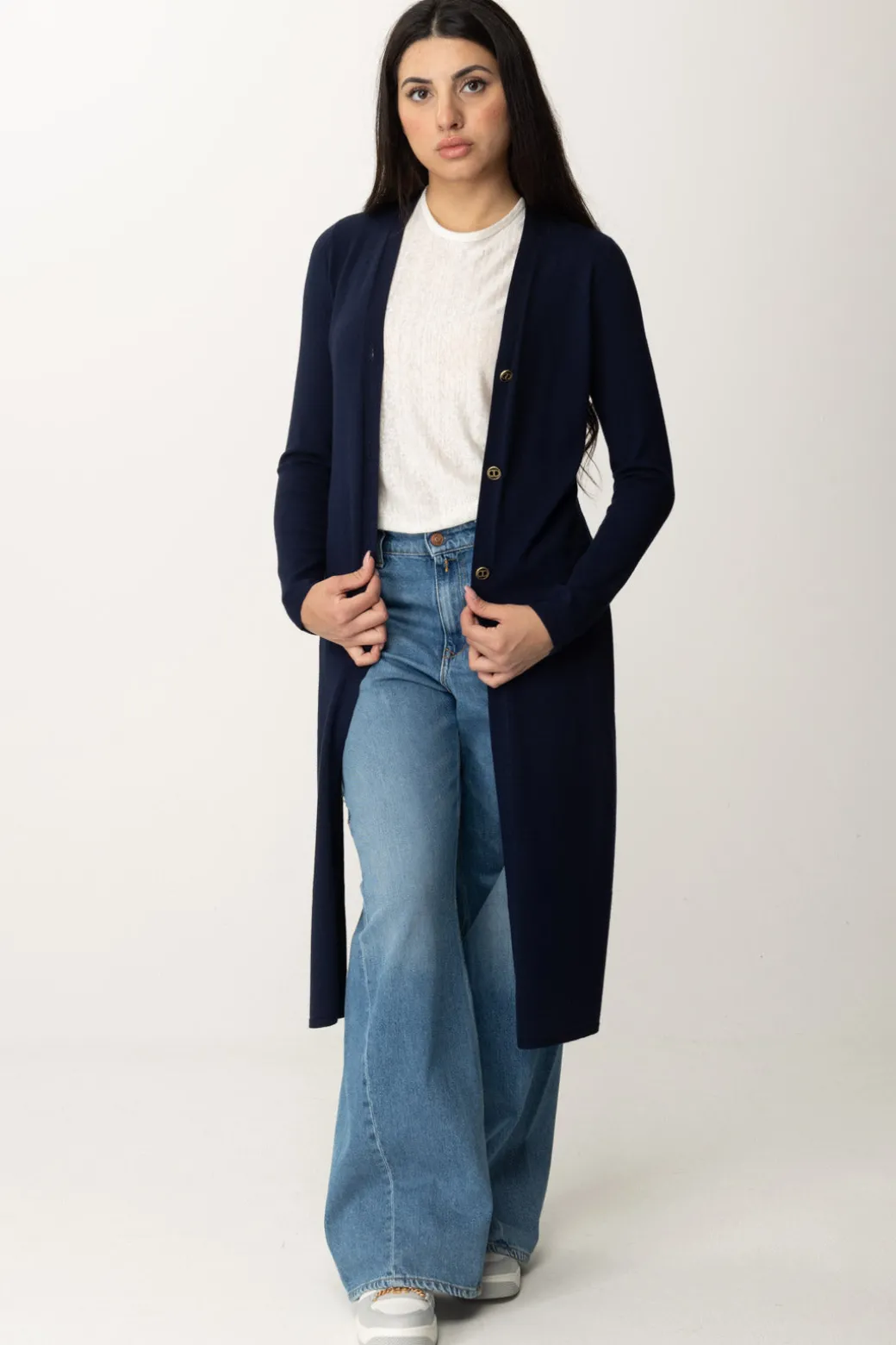 Con bottoni frontali, scollo a V e spacchi laterali, questo Cardigan Twinset lungo è un capo versatile e confortevole, perfetto per completare il tuo look con stile.