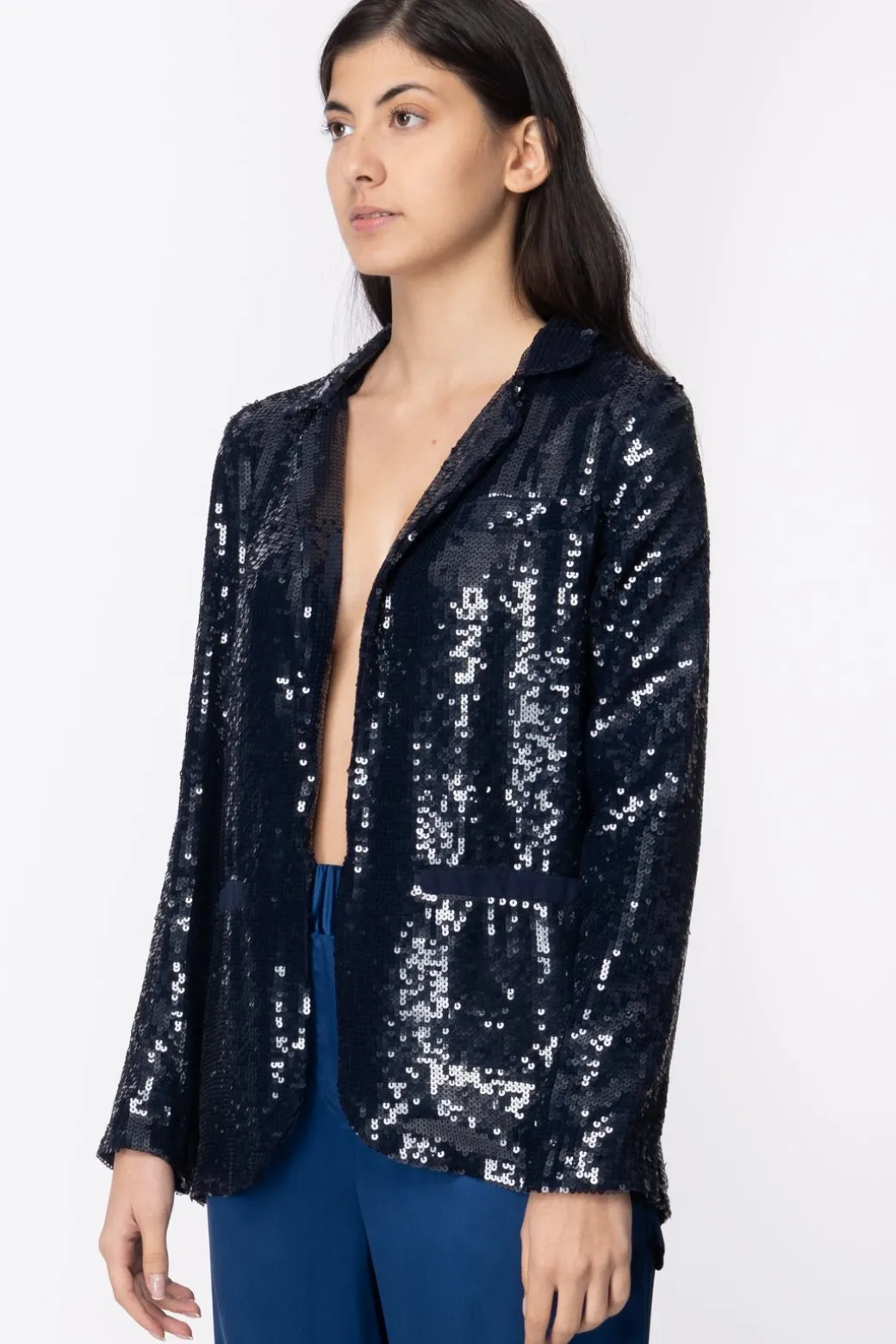 Twin-set Giacca Blazer con Full Paillettes con Chiusura Bottone Nascosto e StascheMID BLU