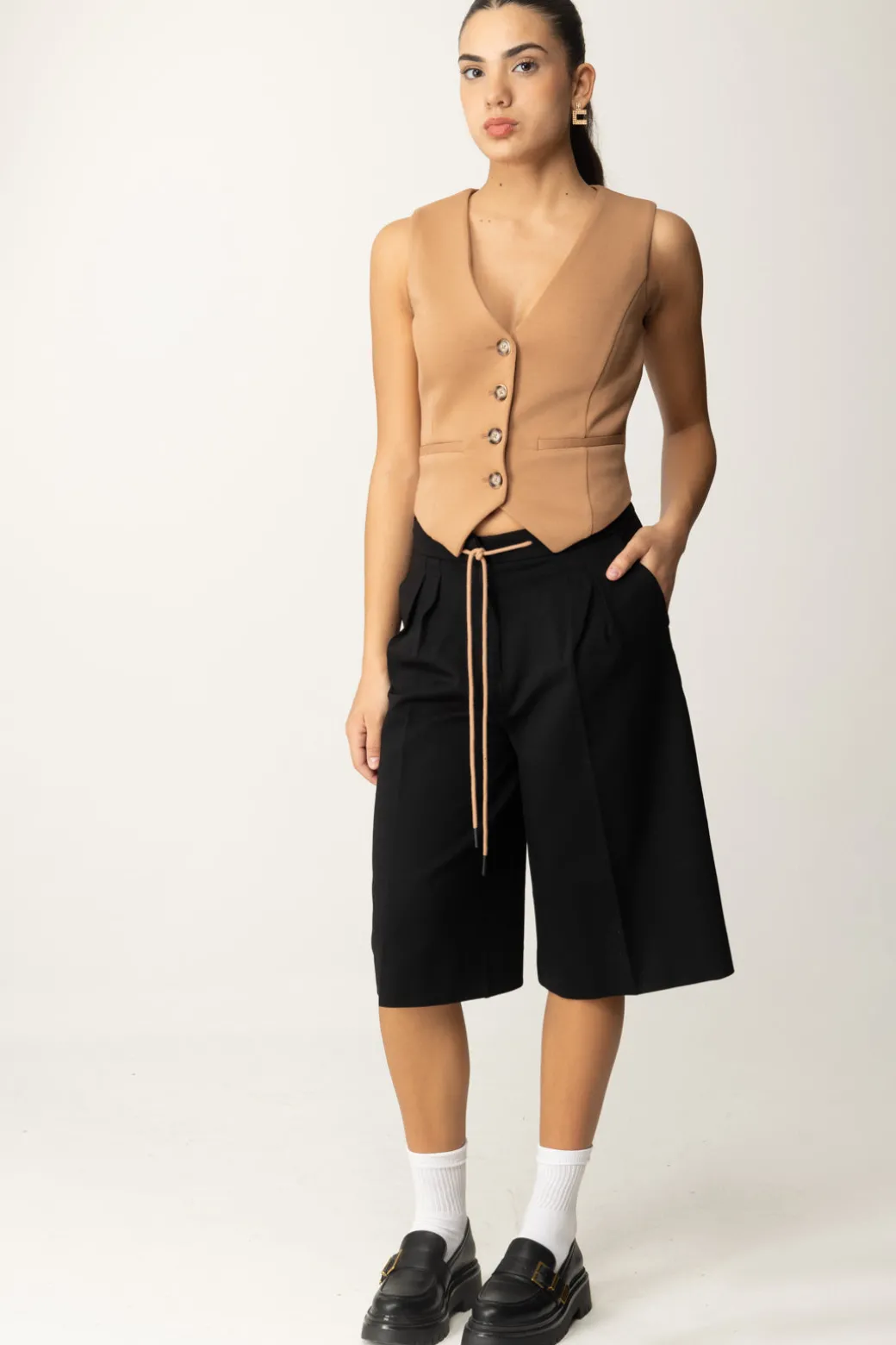 Elegantino e perfettamente in trend: con questo gilet Twinset potrai aggiungere una nota femminile e al passo coi tempi ai tuoi outfit, sovrapponendolo a bluse e camicie o utilizzandolo con un top super sexy. Realizzato in tessuto scuba, lo rifiniscono dei bottoni effetto corno, le tasche anteriori con filetto e delle belle cuciture a vista che seguono l’andamento della silhouette.
