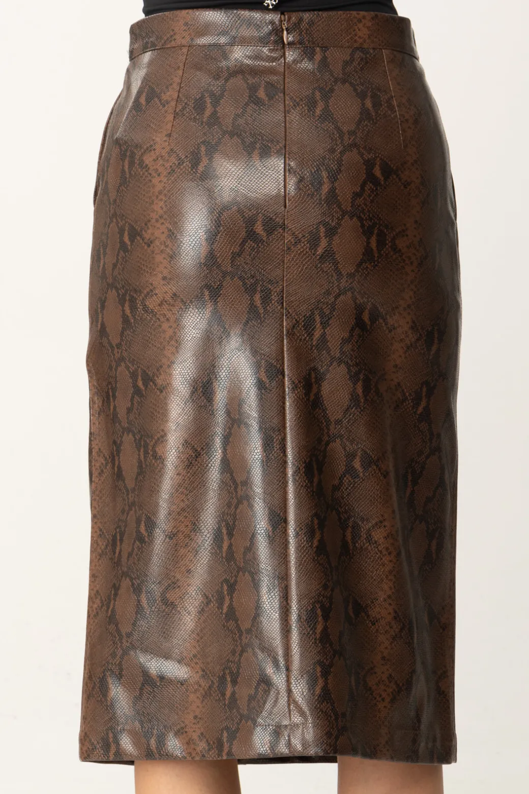 Non tutte le longuette sono uguali, altrimenti non potrebbe spiccare questa gonna midi Twinset in pelle effetto lizar, femminile e cool come poche altre! Vita contrassegnata da logo Oval T in metallo e spacchetto laterale, un capo sofisticato per look che lo siano altrettanto, da indossare h24 cambiando abbinamenti.